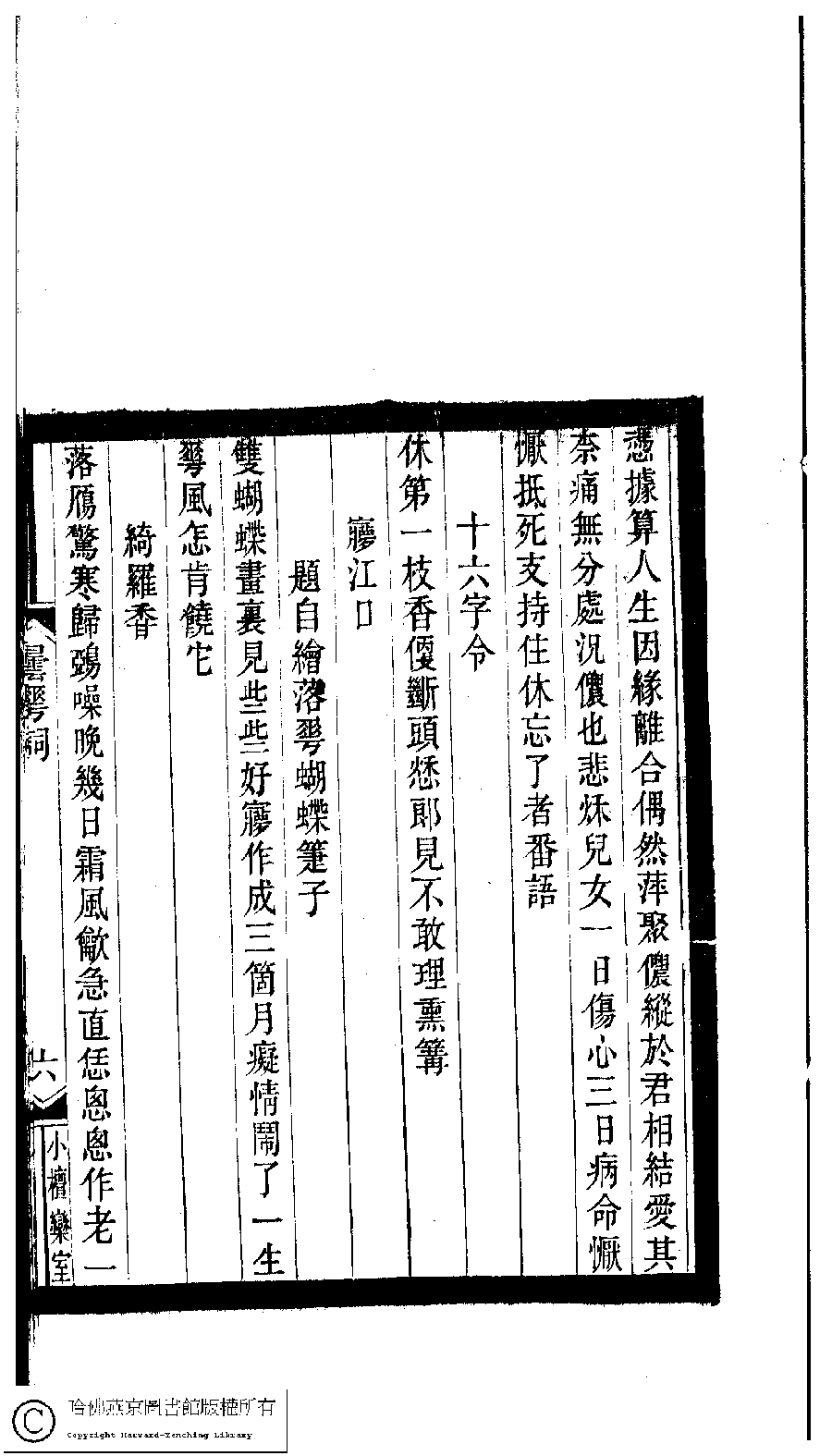 | Appears in: Xiao tan luan shi hui ke gui xiu ci: 10 ji 100 zhong 100 juan (edited by Xu Naichang, Qing dynasty): Tan hua ci: 1 juan |