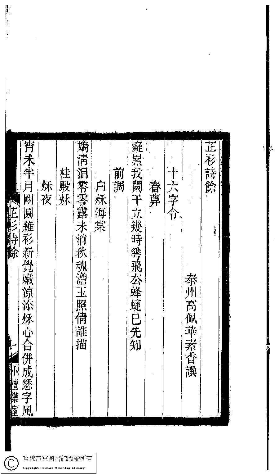 | Appears in: Xiao tan luan shi hui ke gui xiu ci: 10 ji 100 zhong 100 juan (edited by Xu Naichang, Qing dynasty): Zhi shan shi yu: 1 juan |