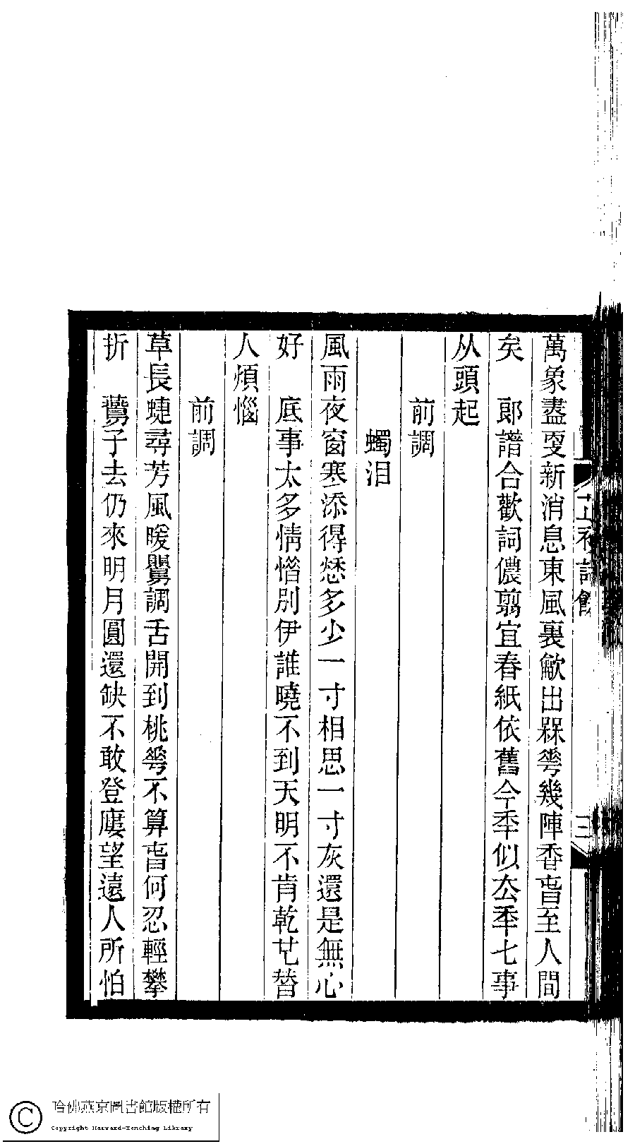 | (PRINT FRIENDLY VERSION) 小檀欒室彙刻閨秀詞﹕十集一百種一百卷(清徐乃昌輯) : 芷衫詩餘﹕一卷。清光緒二十二年(1896)南陵徐氏刻本。 ![]() Page : 芷衫詩餘.3b | click for larger image | 小檀欒室彙刻閨秀詞﹕十集一百種一百卷(清徐乃昌輯) : 芷衫詩餘﹕一卷。清光緒二十二年(1896)南陵徐氏刻本。![]() Page : 芷衫詩餘.3a | click for larger image | Back |