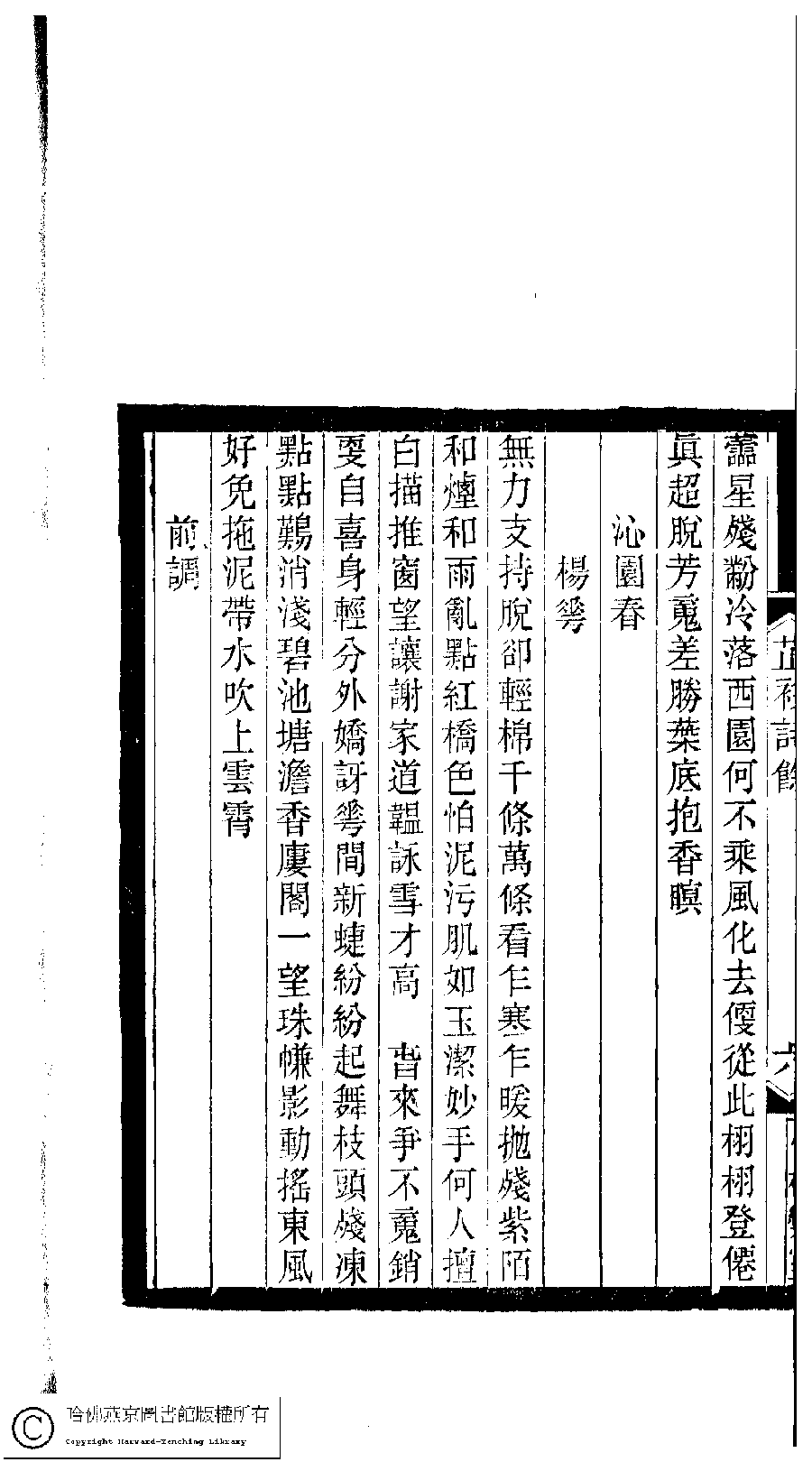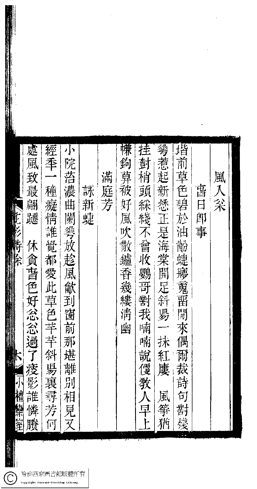 | (PRINT FRIENDLY VERSION) 小檀欒室彙刻閨秀詞﹕十集一百種一百卷(清徐乃昌輯) : 芷衫詩餘﹕一卷。清光緒二十二年(1896)南陵徐氏刻本。 ![]() Page : 芷衫詩餘.6b | click for larger image | 小檀欒室彙刻閨秀詞﹕十集一百種一百卷(清徐乃昌輯) : 芷衫詩餘﹕一卷。清光緒二十二年(1896)南陵徐氏刻本。![]() Page : 芷衫詩餘.6a | click for larger image | Back |