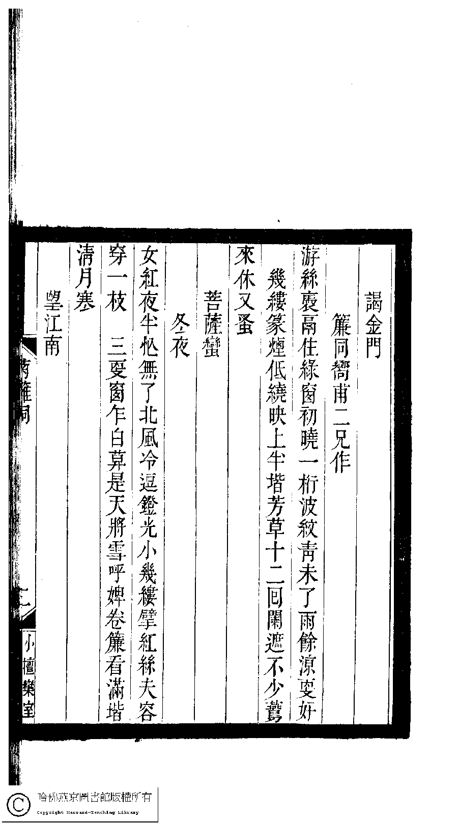 Poem [Ye jin men : Lian tong Xiangfu er xiong zuo]