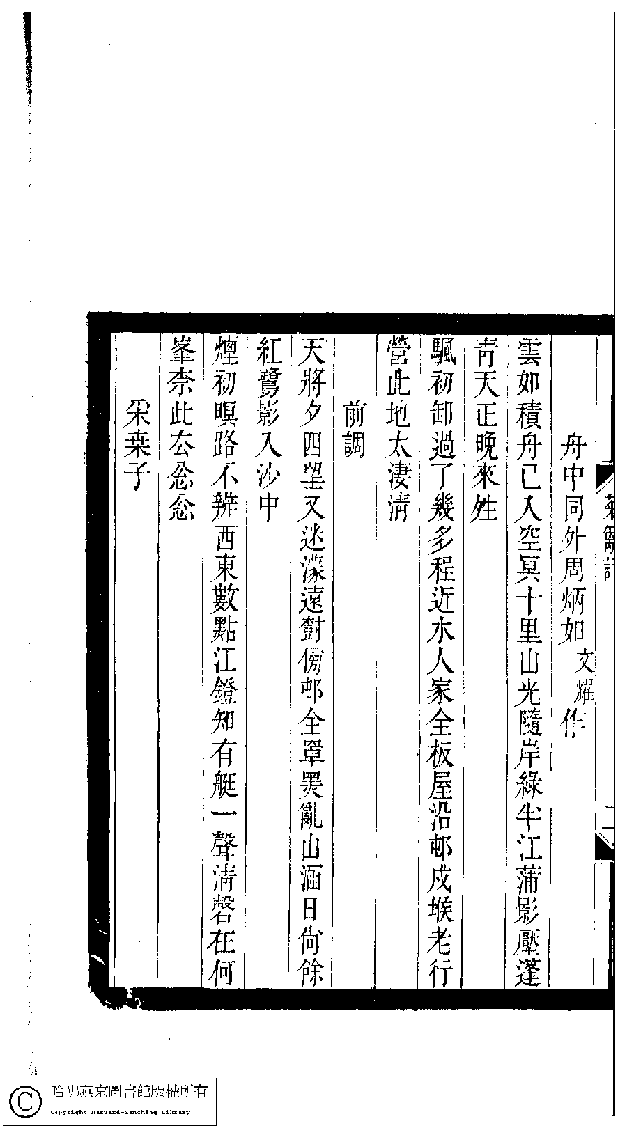 | (PRINT FRIENDLY VERSION) 小檀欒室彙刻閨秀詞﹕十集一百種一百卷(清徐乃昌輯) : 鞠篱詞﹕一卷。清光緒二十二年(1896)南陵徐氏刻本。 ![]() Page : 鞠篱詞.3a | click for larger image | 小檀欒室彙刻閨秀詞﹕十集一百種一百卷(清徐乃昌輯) : 鞠篱詞﹕一卷。清光緒二十二年(1896)南陵徐氏刻本。![]() Page : 鞠篱詞.2b | click for larger image | Back |