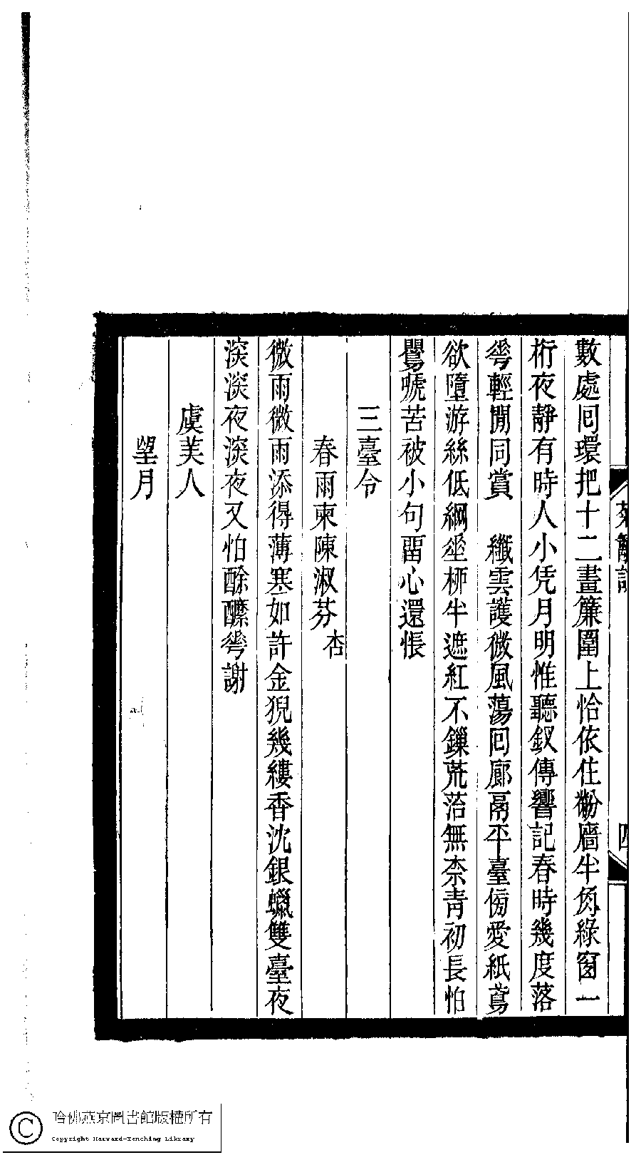 | Appears in: Xiao tan luan shi hui ke gui xiu ci: 10 ji 100 zhong 100 juan (edited by Xu Naichang, Qing dynasty): Ju li ci: 1 juan |