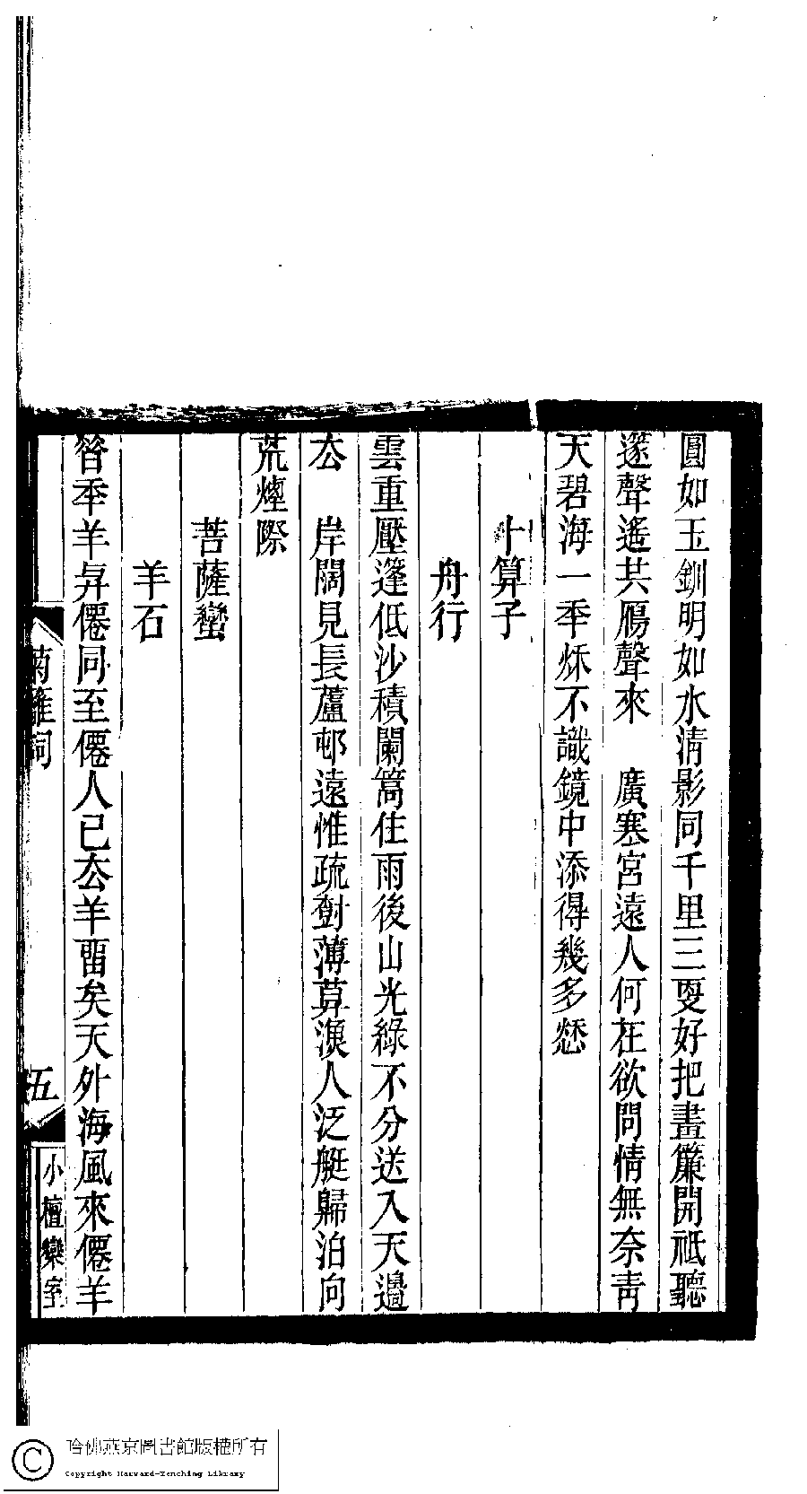| (PRINT FRIENDLY VERSION) 小檀欒室彙刻閨秀詞﹕十集一百種一百卷(清徐乃昌輯) : 鞠篱詞﹕一卷。清光緒二十二年(1896)南陵徐氏刻本。 ![]() Page : 鞠篱詞.5a | click for larger image | 小檀欒室彙刻閨秀詞﹕十集一百種一百卷(清徐乃昌輯) : 鞠篱詞﹕一卷。清光緒二十二年(1896)南陵徐氏刻本。![]() Page : 鞠篱詞.4b | click for larger image | Back |