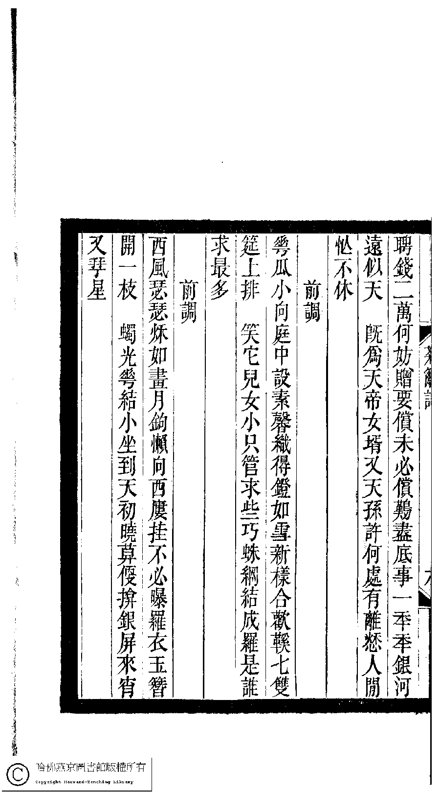 | Appears in: Xiao tan luan shi hui ke gui xiu ci: 10 ji 100 zhong 100 juan (edited by Xu Naichang, Qing dynasty): Ju li ci: 1 juan |