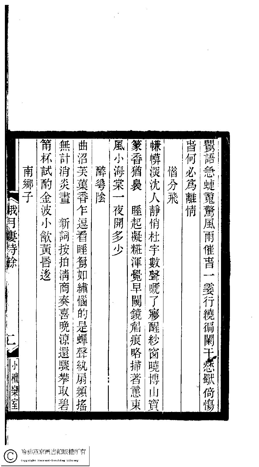 | (PRINT FRIENDLY VERSION) 小檀欒室彙刻閨秀詞﹕十集一百種一百卷(清徐乃昌輯) : 哦月樓詩餘﹕一卷。清光緒二十二年(1896)南陵徐氏刻本。 ![]() Page : 哦月樓詩餘.2a | click for larger image | Back |