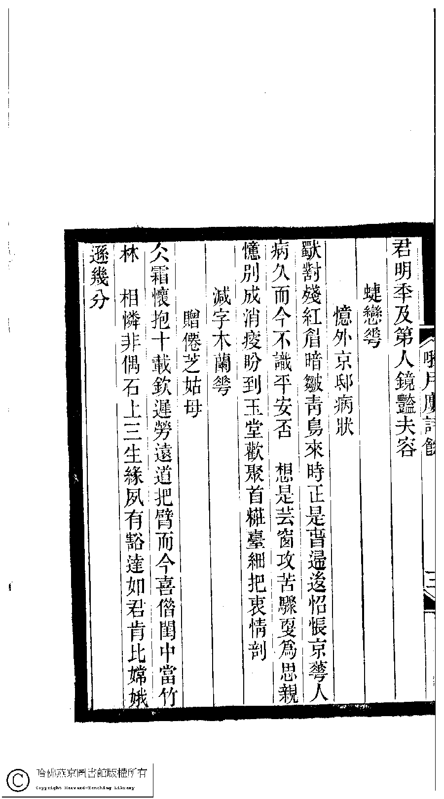 | (PRINT FRIENDLY VERSION) 小檀欒室彙刻閨秀詞﹕十集一百種一百卷(清徐乃昌輯) : 哦月樓詩餘﹕一卷。清光緒二十二年(1896)南陵徐氏刻本。 ![]() Page : 哦月樓詩餘.3b | click for larger image | Back |