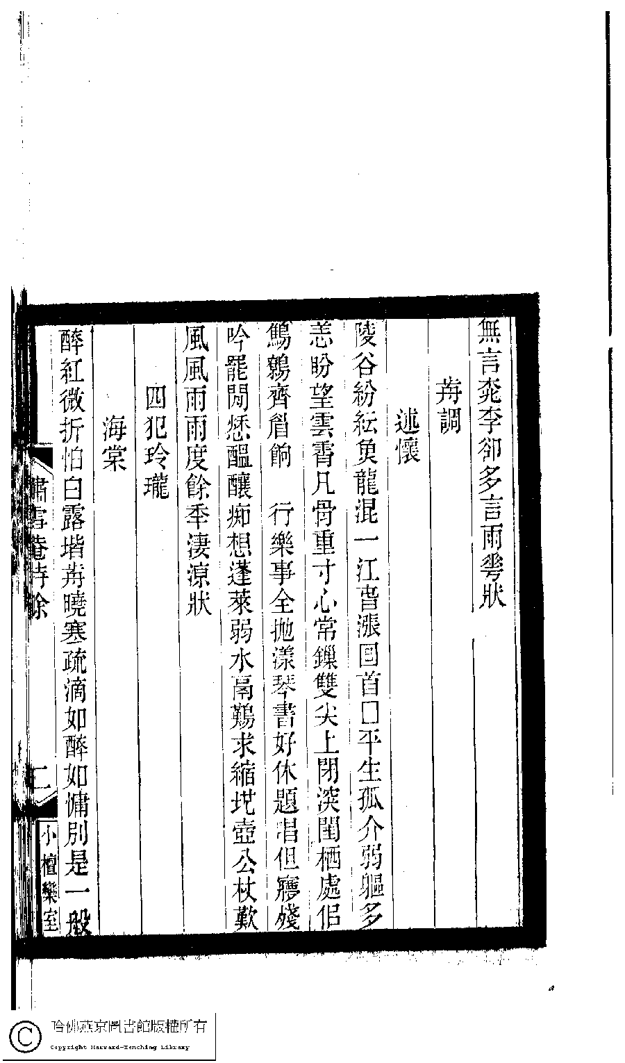 | (PRINT FRIENDLY VERSION) 小檀欒室彙刻閨秀詞﹕十集一百種一百卷(清徐乃昌輯) : 嘯雪庵詩餘﹕一卷。清光緒二十二年(1896)南陵徐氏刻本。 ![]() Page : 嘯雪庵詩餘.2a | click for larger image | Back |