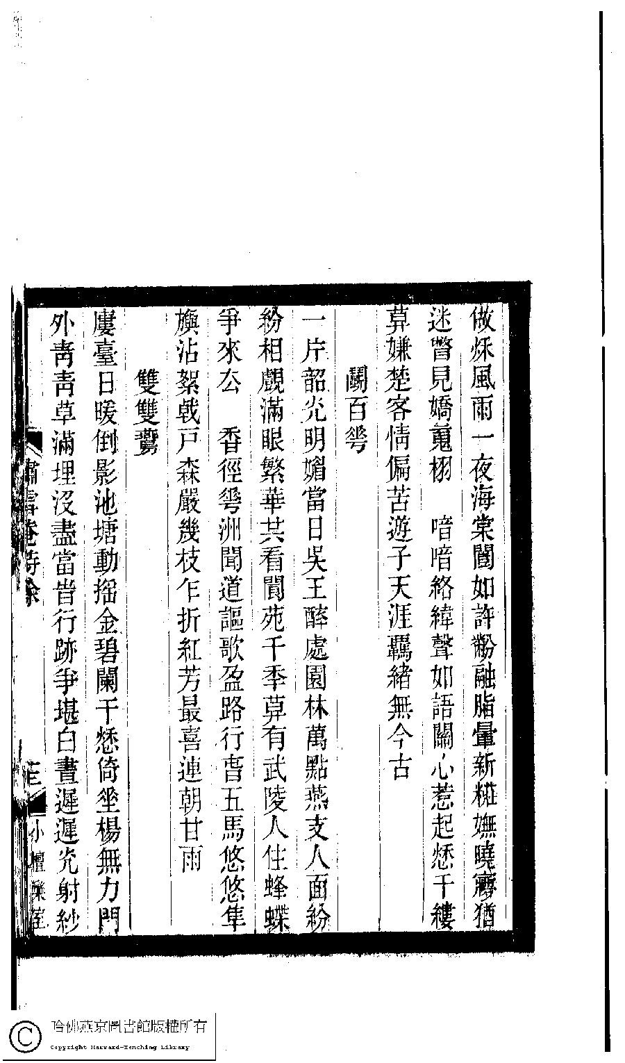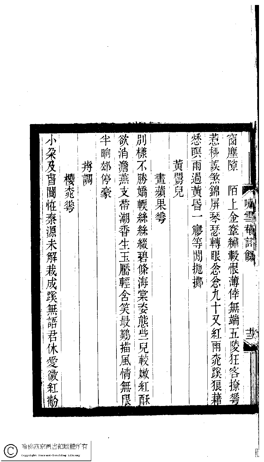 | (PRINT FRIENDLY VERSION) 小檀欒室彙刻閨秀詞﹕十集一百種一百卷(清徐乃昌輯) : 嘯雪庵詩餘﹕一卷。清光緒二十二年(1896)南陵徐氏刻本。 ![]() Page : 嘯雪庵詩餘.13b | click for larger image | 小檀欒室彙刻閨秀詞﹕十集一百種一百卷(清徐乃昌輯) : 嘯雪庵詩餘﹕一卷。清光緒二十二年(1896)南陵徐氏刻本。![]() Page : 嘯雪庵詩餘.13a | click for larger image | Back |