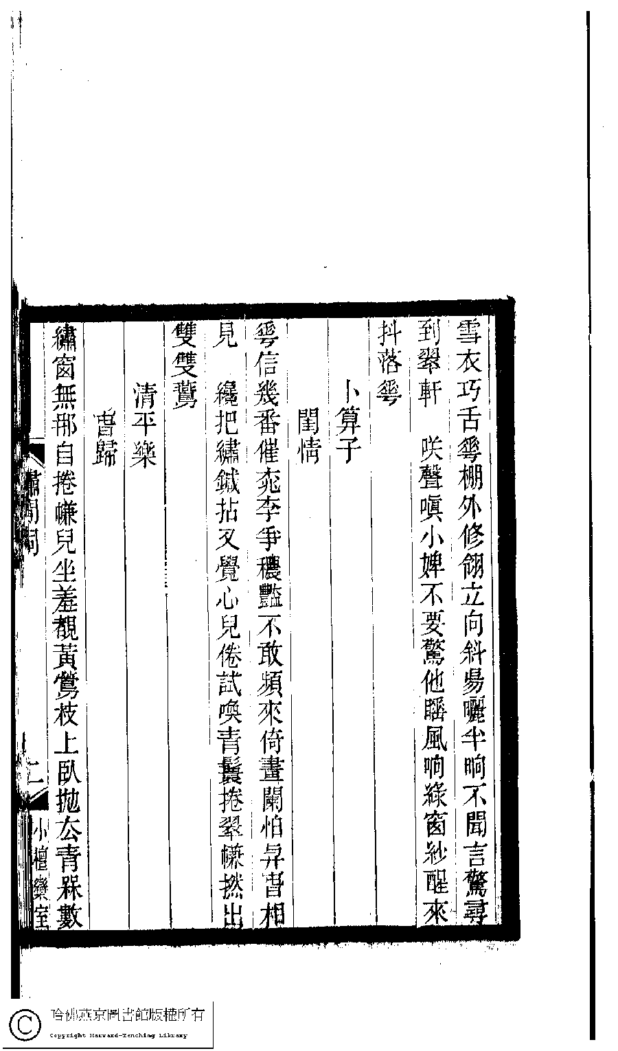 | (PRINT FRIENDLY VERSION) 小檀欒室彙刻閨秀詞﹕十集一百種一百卷(清徐乃昌輯) : 繡閒詞﹕一卷。清光緒二十二年(1896)南陵徐氏刻本。 ![]() Page : 繡閒詞.2a | click for larger image | Back |