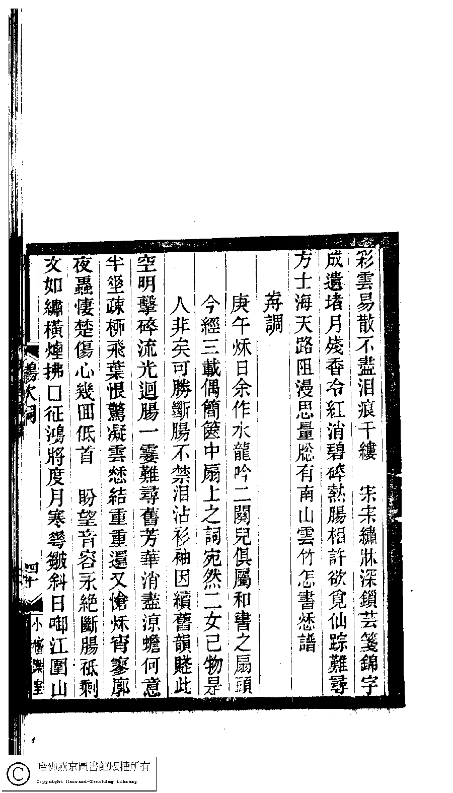 | (PRINT FRIENDLY VERSION) 小檀欒室彙刻閨秀詞﹕十集一百種一百卷(清徐乃昌輯) : 鸝吹詞﹕一卷。清光緒二十二年(1896)南陵徐氏刻本。 ![]() Page : 1.40a | click for larger image | 小檀欒室彙刻閨秀詞﹕十集一百種一百卷(清徐乃昌輯) : 鸝吹詞﹕一卷。清光緒二十二年(1896)南陵徐氏刻本。![]() Page : 1.39b | click for larger image | Back |