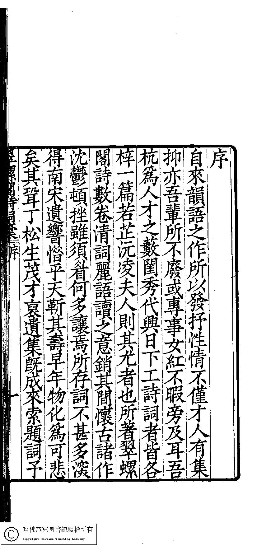 | (PRINT FRIENDLY VERSION) 翠螺閣詩詞稾﹕五卷﹐附舞鏡集﹕一卷(清凌祉媛撰)。清咸豐四年(1854)刻本。 ![]() Page : 序.1b | click for larger image | 翠螺閣詩詞稾﹕五卷﹐附舞鏡集﹕一卷(清凌祉媛撰)。清咸豐四年(1854)刻本。![]() Page : 序.1a | click for larger image | Back |
