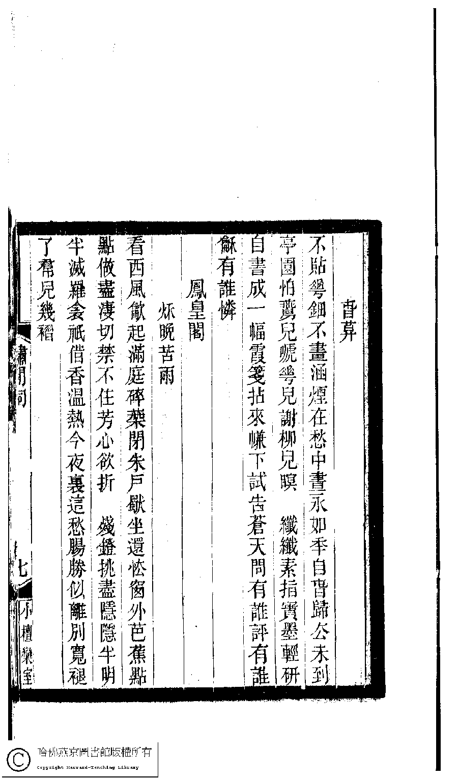 | (PRINT FRIENDLY VERSION) 小檀欒室彙刻閨秀詞﹕十集一百種一百卷(清徐乃昌輯) : 繡閒詞﹕一卷。清光緒二十二年(1896)南陵徐氏刻本。 ![]() Page : 繡閒詞.7a | click for larger image | Back |
