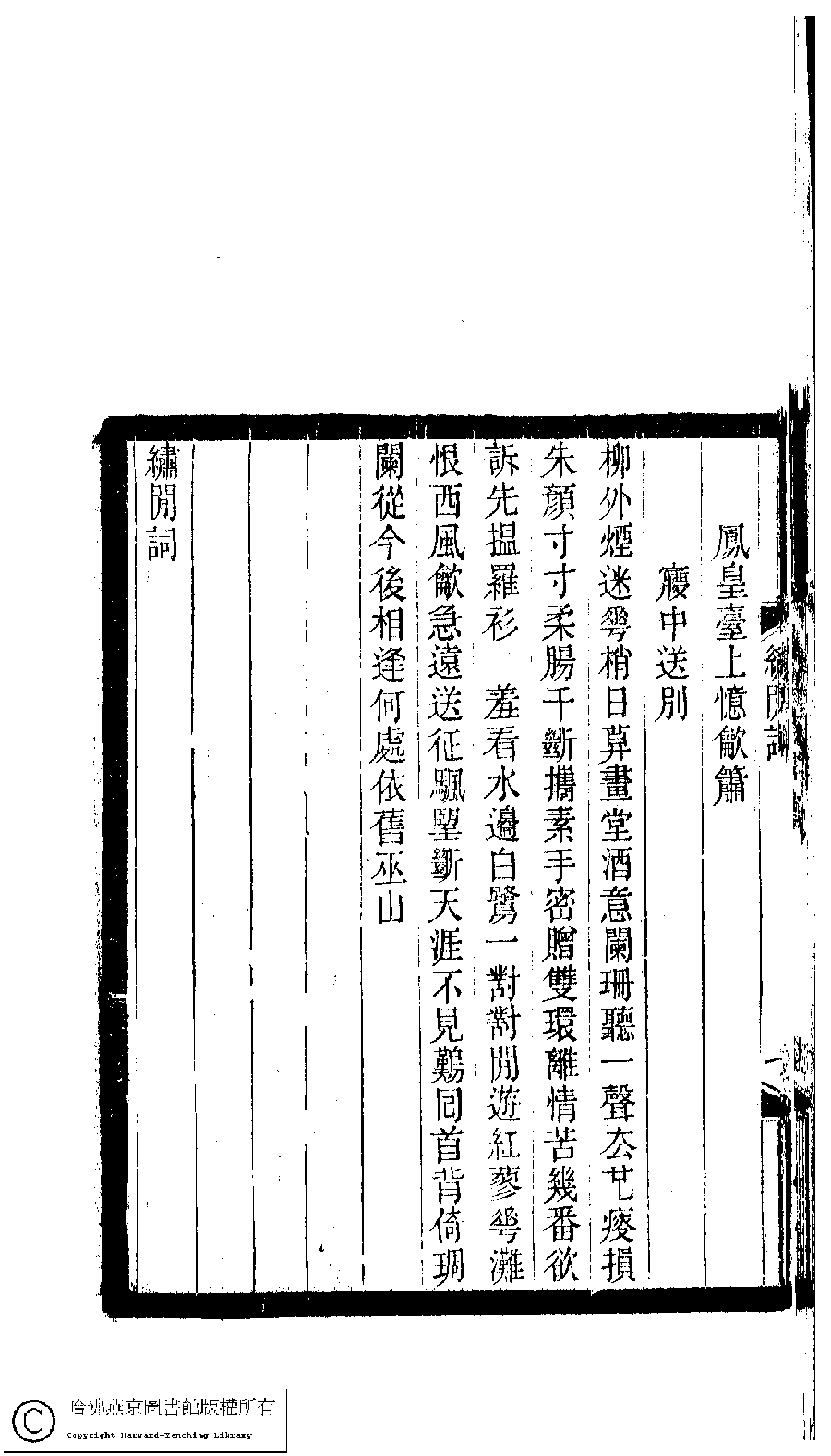 | (PRINT FRIENDLY VERSION) 小檀欒室彙刻閨秀詞﹕十集一百種一百卷(清徐乃昌輯) : 繡閒詞﹕一卷。清光緒二十二年(1896)南陵徐氏刻本。 ![]() Page : 繡閒詞.7b | click for larger image | Back |