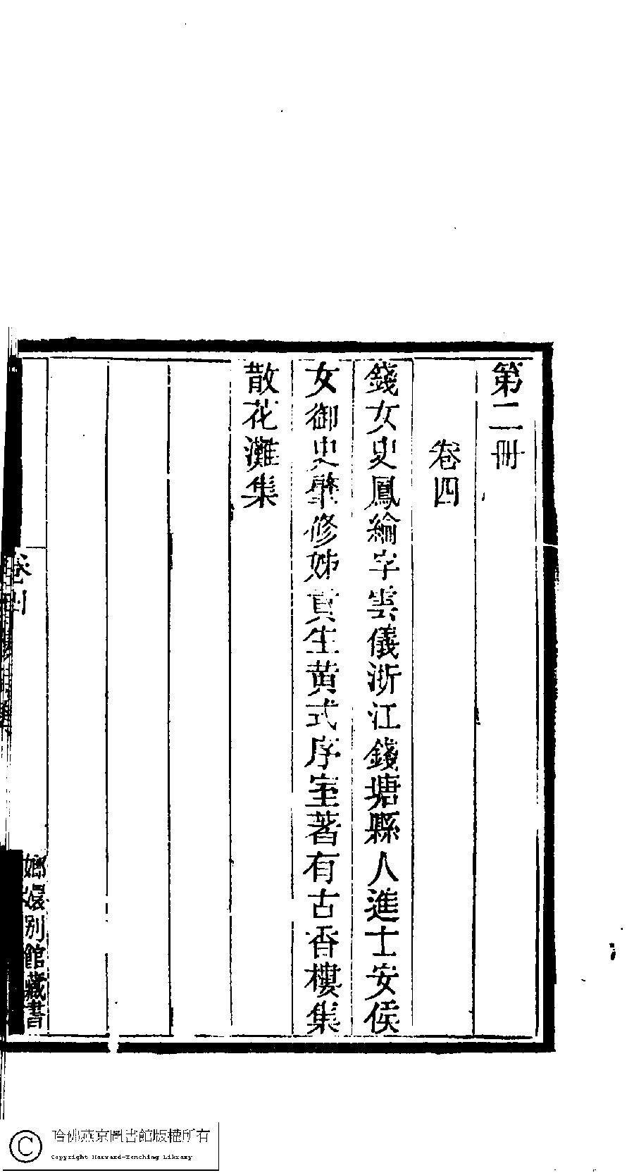 | (PRINT FRIENDLY VERSION) 國朝閨閣詩鈔﹕一百種一百卷(清蔡殿齊輯) : 古香樓詩集﹕一卷。清道光二十四年(1844)刻本。 ![]() Page : 2.17b | click for larger image | 國朝閨閣詩鈔﹕一百種一百卷(清蔡殿齊輯) : 古香樓詩集﹕一卷。清道光二十四年(1844)刻本。![]() Page : 2.17a | click for larger image | Back |