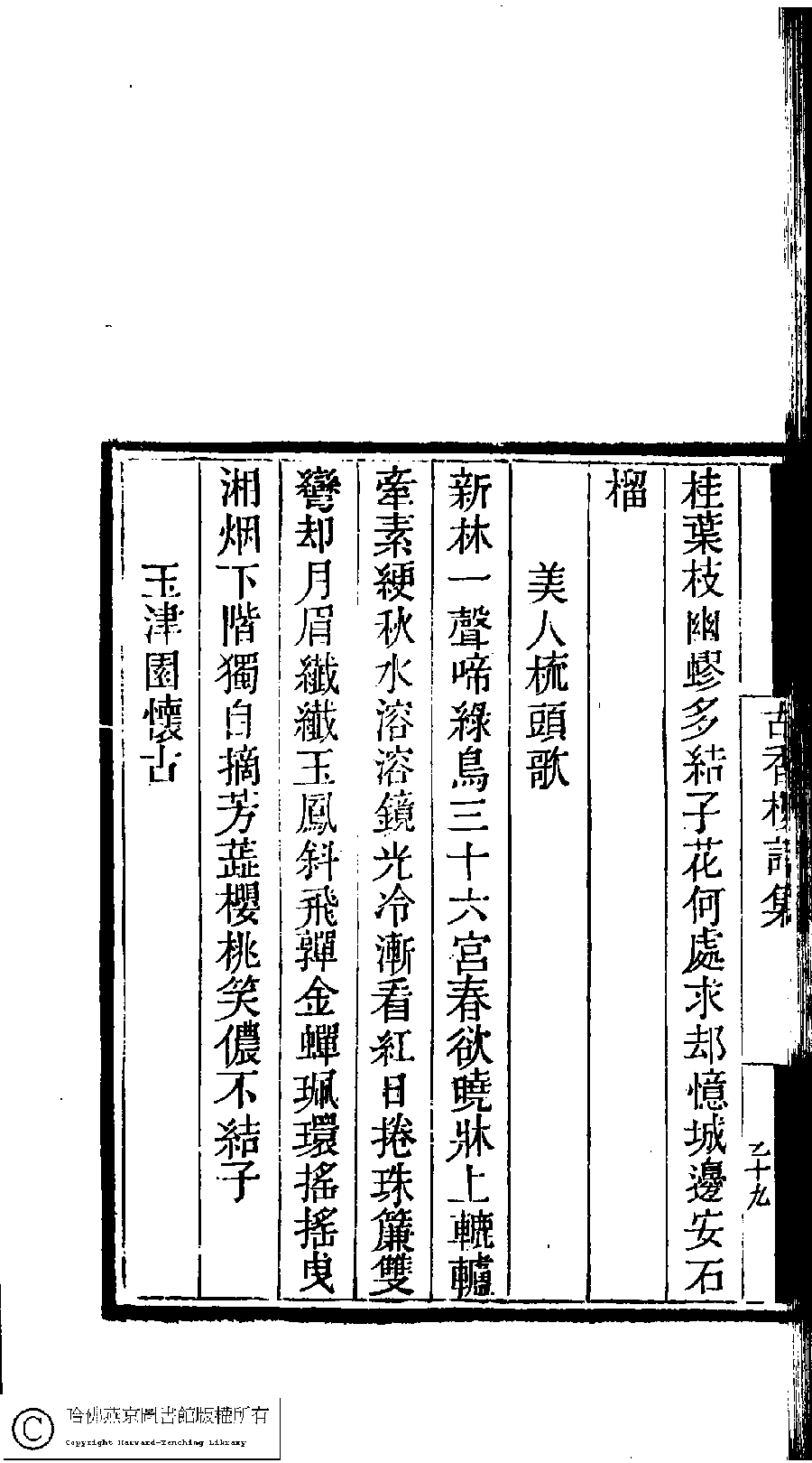 | (PRINT FRIENDLY VERSION) 國朝閨閣詩鈔﹕一百種一百卷(清蔡殿齊輯) : 古香樓詩集﹕一卷。清道光二十四年(1844)刻本。 ![]() Page : 2.19b | click for larger image | Back |