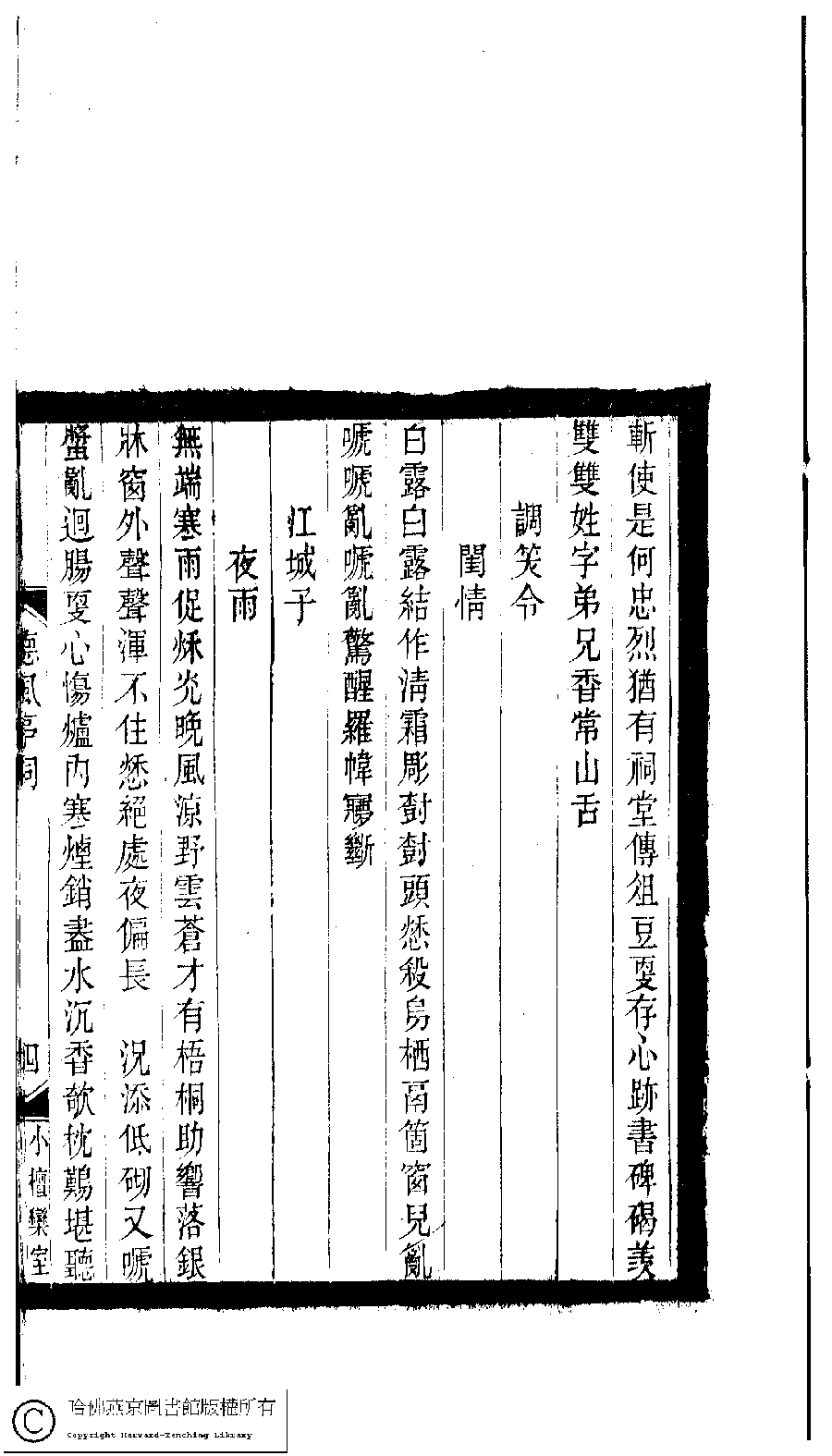 | Appears in: Xiao tan luan shi hui ke gui xiu ci: 10 ji 100 zhong 100 juan (edited by Xu Naichang, Qing dynasty): De feng ting ci: 1 juan |