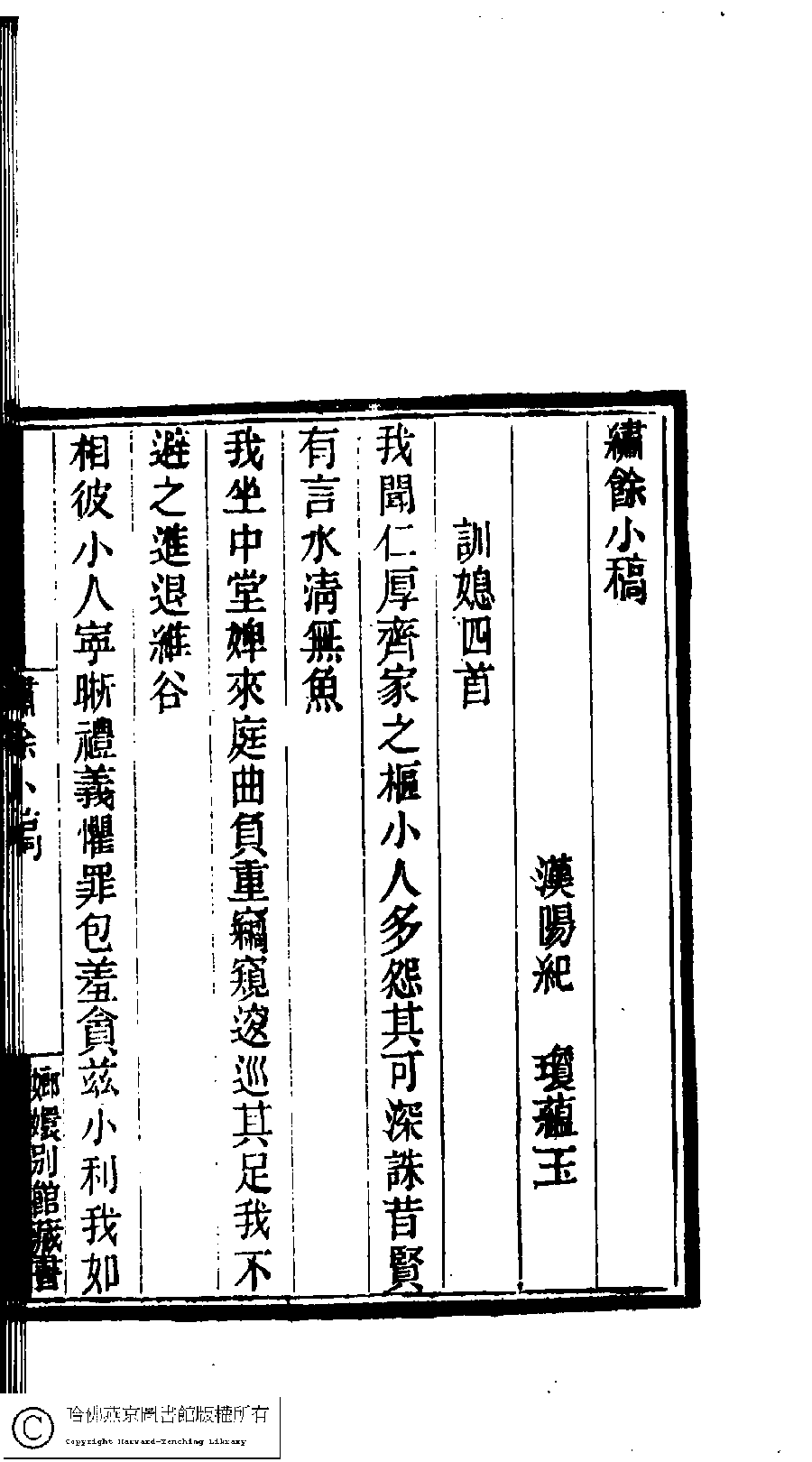 | (PRINT FRIENDLY VERSION) 國朝閨閣詩鈔﹕一百種一百卷(清蔡殿齊輯) : 繡餘小稿﹕一卷。清道光二十四年(1844)刻本。 ![]() Page : 2.33b | click for larger image | 國朝閨閣詩鈔﹕一百種一百卷(清蔡殿齊輯) : 繡餘小稿﹕一卷。清道光二十四年(1844)刻本。![]() Page : 2.33a | click for larger image | Back |