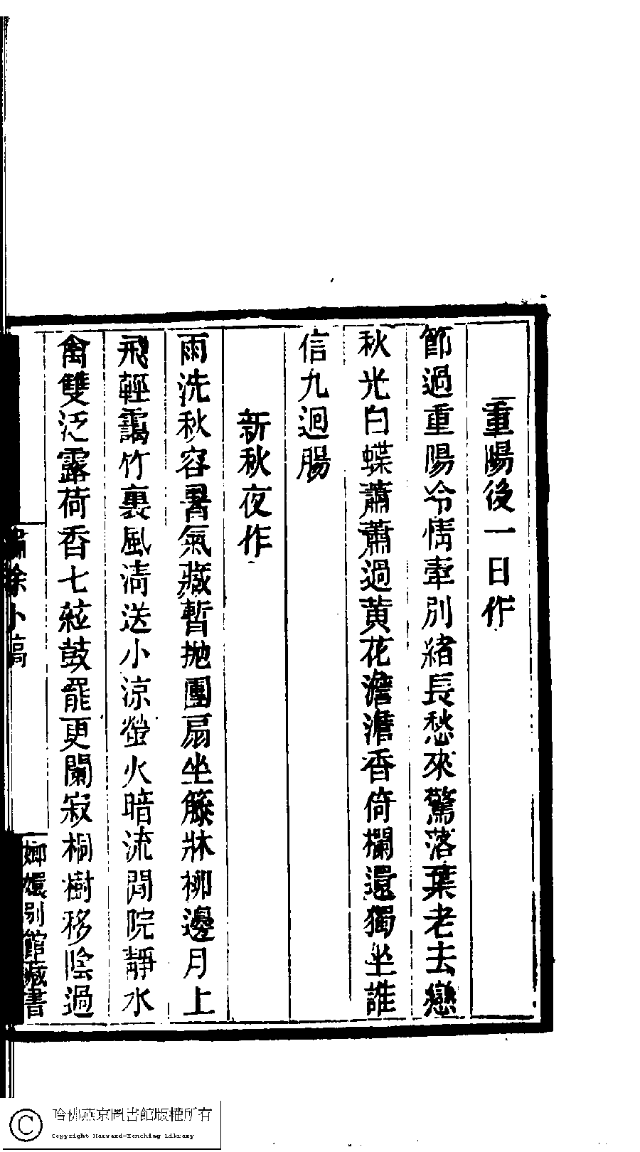 | (PRINT FRIENDLY VERSION) 國朝閨閣詩鈔﹕一百種一百卷(清蔡殿齊輯) : 繡餘小稿﹕一卷。清道光二十四年(1844)刻本。 ![]() Page : 2.35a | click for larger image | Back |