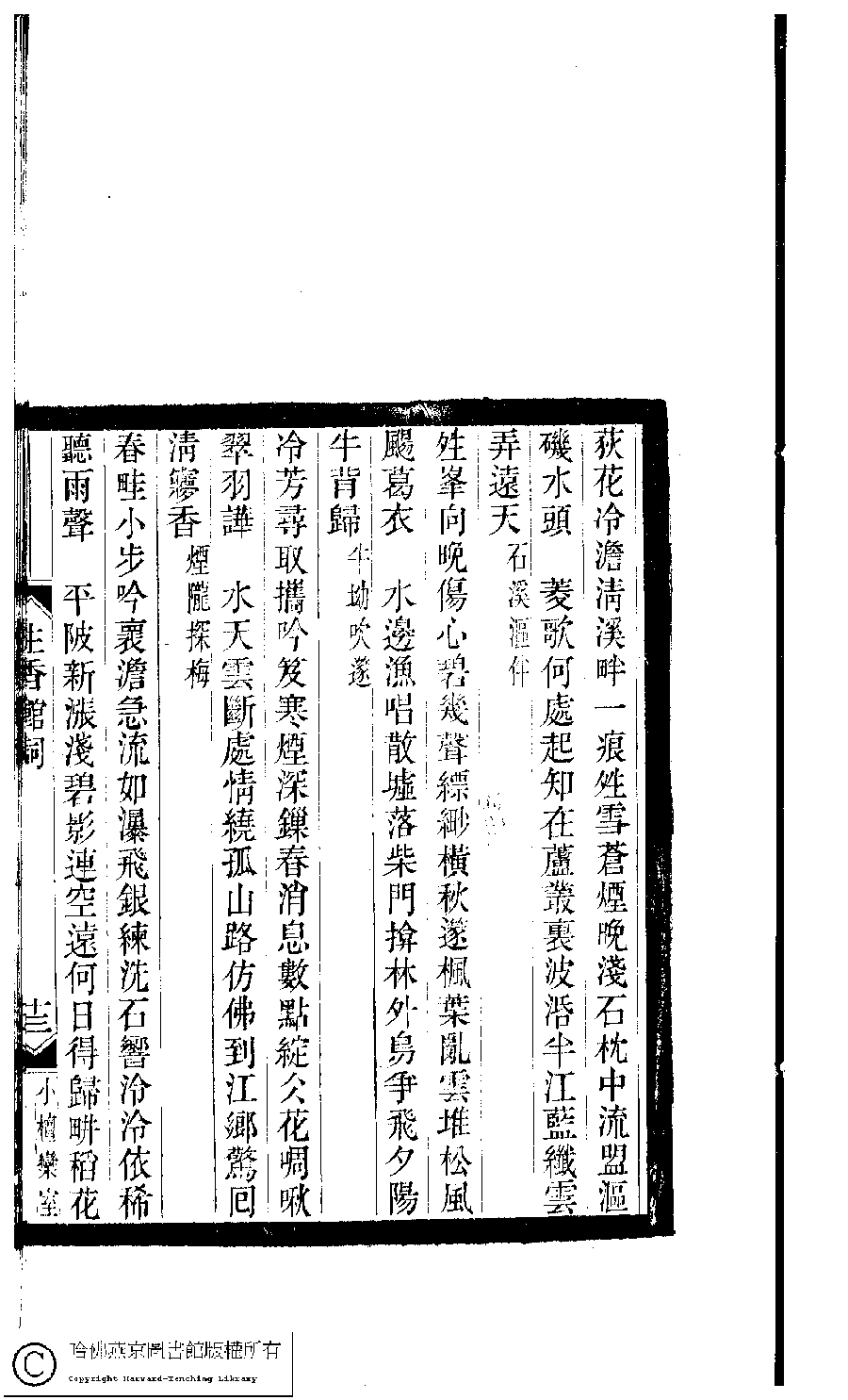 | (PRINT FRIENDLY VERSION) 小檀欒室彙刻閨秀詞﹕十集一百種一百卷(清徐乃昌輯) : 生香館詞﹕一卷。清光緒二十二年(1896)南陵徐氏刻本。 ![]() Page : 生香館詞.13b | click for larger image | 小檀欒室彙刻閨秀詞﹕十集一百種一百卷(清徐乃昌輯) : 生香館詞﹕一卷。清光緒二十二年(1896)南陵徐氏刻本。![]() Page : 生香館詞.13a | click for larger image | 小檀欒室彙刻閨秀詞﹕十集一百種一百卷(清徐乃昌輯) : 生香館詞﹕一卷。清光緒二十二年(1896)南陵徐氏刻本。![]() Page : 生香館詞.12b | click for larger image | 小檀欒室彙刻閨秀詞﹕十集一百種一百卷(清徐乃昌輯) : 生香館詞﹕一卷。清光緒二十二年(1896)南陵徐氏刻本。![]() Page : 生香館詞.12a | click for larger image | Back |