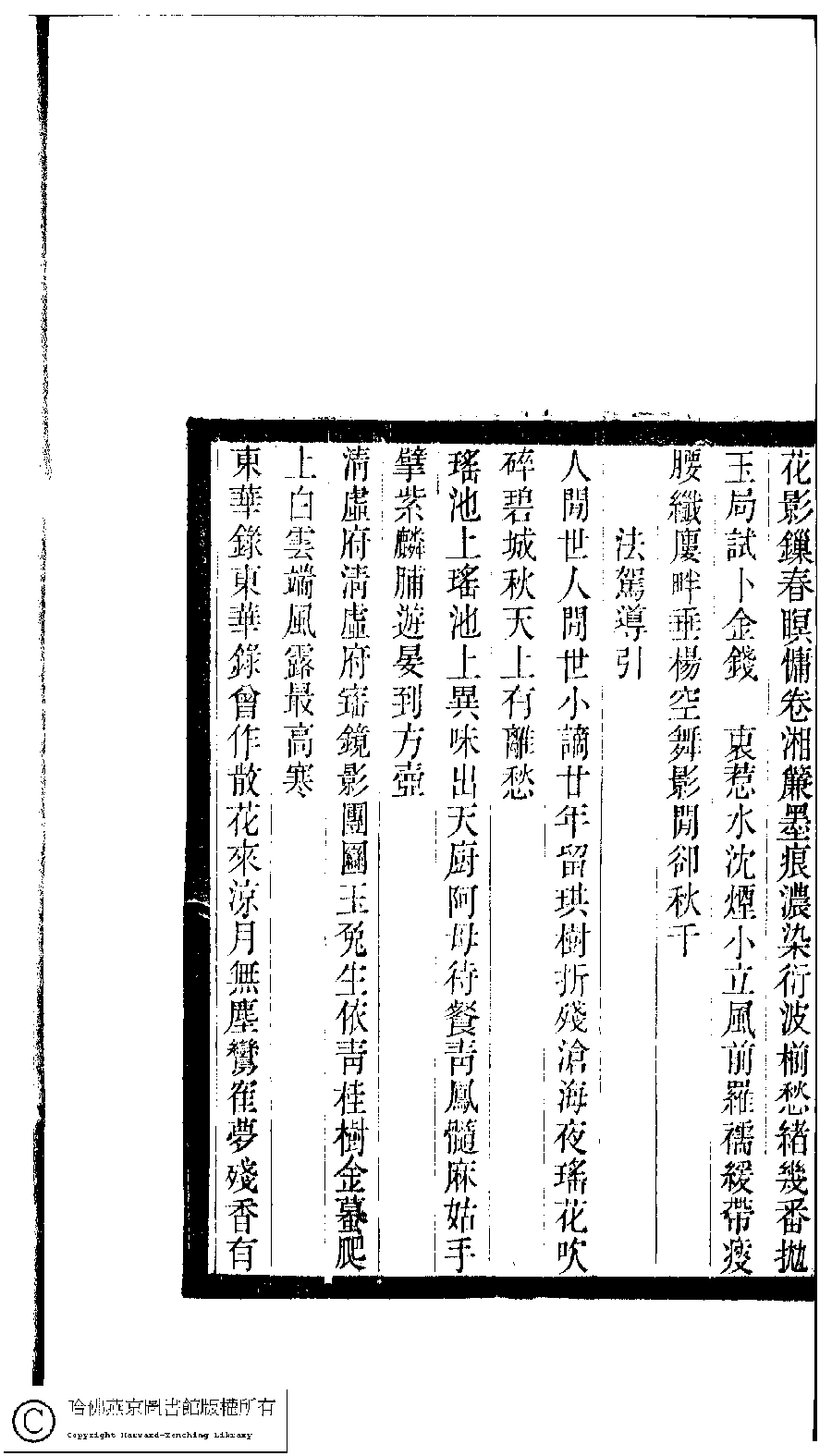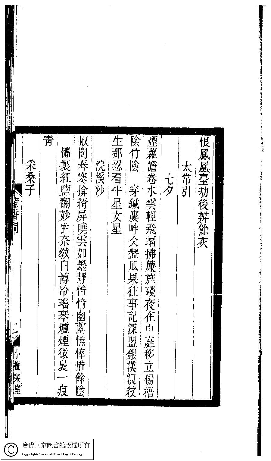 | (PRINT FRIENDLY VERSION) 小檀欒室彙刻閨秀詞﹕十集一百種一百卷(清徐乃昌輯) : 茝香詞﹕一卷。清光緒二十二年(1896)南陵徐氏刻本。 ![]() Page : 茞香詞.2a | click for larger image | 小檀欒室彙刻閨秀詞﹕十集一百種一百卷(清徐乃昌輯) : 茝香詞﹕一卷。清光緒二十二年(1896)南陵徐氏刻本。![]() Page : 茞香詞.1b | click for larger image | Back |