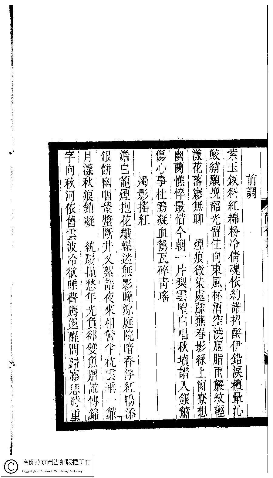 | Appears in: Xiao tan luan shi hui ke gui xiu ci: 10 ji 100 zhong 100 juan (edited by Xu Naichang, Qing dynasty): Chai xiang ci: 1 juan |