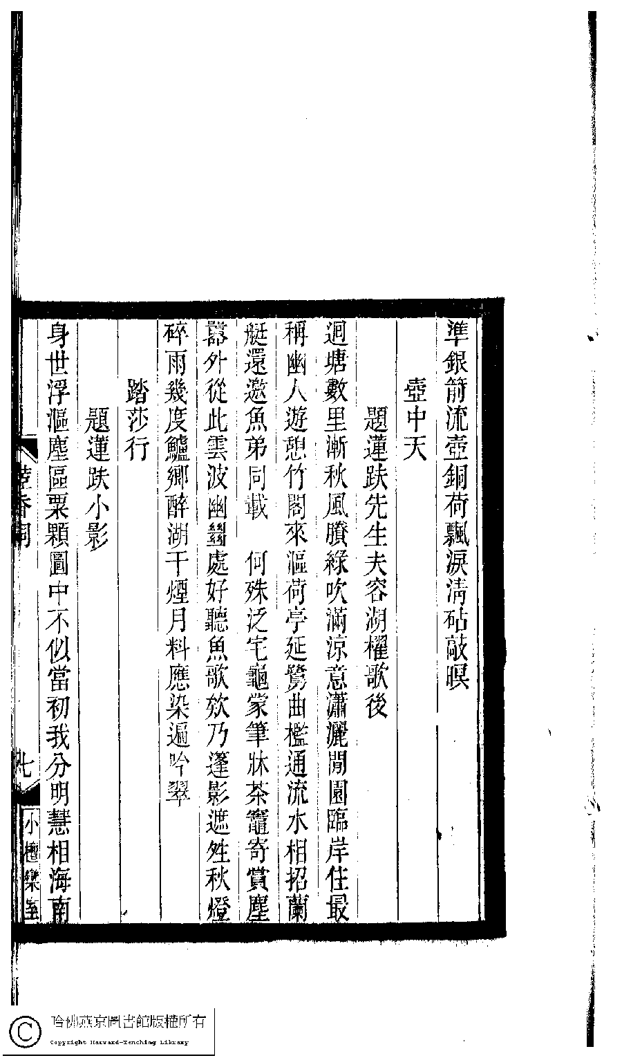 | (PRINT FRIENDLY VERSION) 小檀欒室彙刻閨秀詞﹕十集一百種一百卷(清徐乃昌輯) : 茝香詞﹕一卷。清光緒二十二年(1896)南陵徐氏刻本。 ![]() Page : 茞香詞.7a | click for larger image | 小檀欒室彙刻閨秀詞﹕十集一百種一百卷(清徐乃昌輯) : 茝香詞﹕一卷。清光緒二十二年(1896)南陵徐氏刻本。![]() Page : 茞香詞.6b | click for larger image | Back |