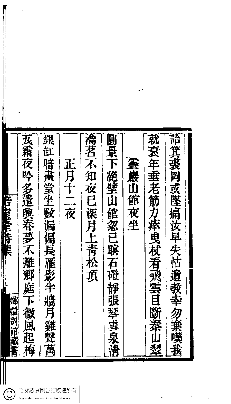 | Appears in: Guo chao gui ge shi chao: 100 zhong 100 juan (edited by Cai Dianqi, Qing dynasty): Pei yuan tang shi ji: 1 juan |