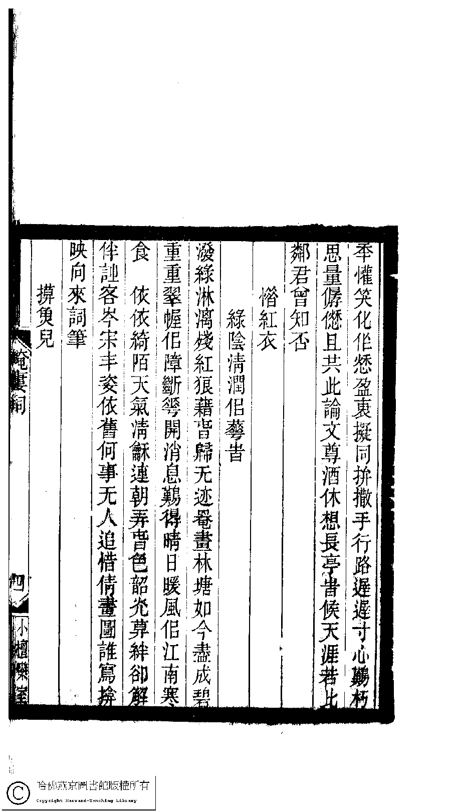 | (PRINT FRIENDLY VERSION) 小檀欒室彙刻閨秀詞﹕十集一百種一百卷(清徐乃昌輯) : 崦樓詞﹕一卷。清光緒二十二年(1896)南陵徐氏刻本。 ![]() Page : 1.4b | click for larger image | 小檀欒室彙刻閨秀詞﹕十集一百種一百卷(清徐乃昌輯) : 崦樓詞﹕一卷。清光緒二十二年(1896)南陵徐氏刻本。![]() Page : 1.4a | click for larger image | Back |