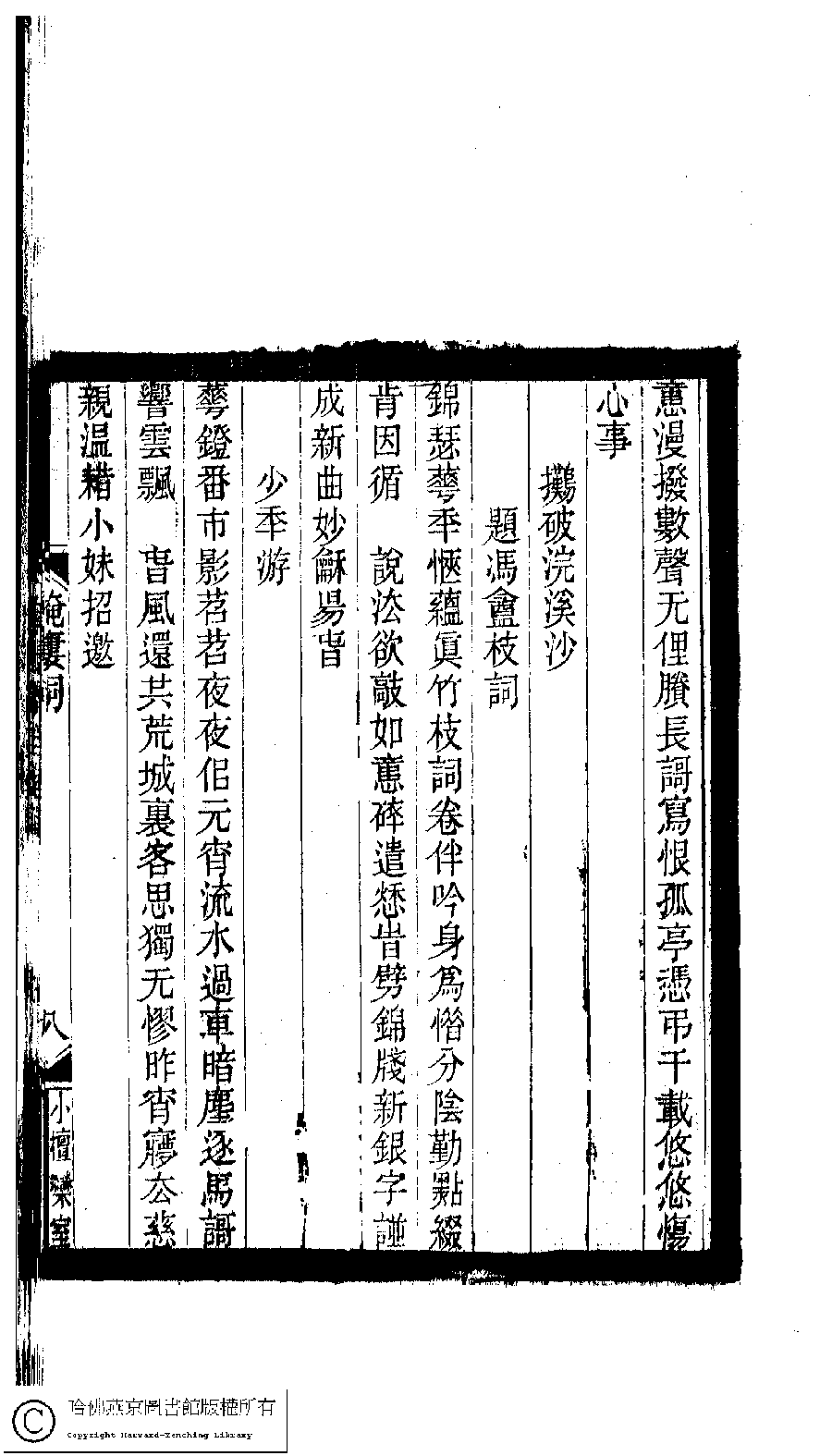 | Appears in: Xiao tan luan shi hui ke gui xiu ci: 10 ji 100 zhong 100 juan (edited by Xu Naichang, Qing dynasty): An lou ci: 1 juan |