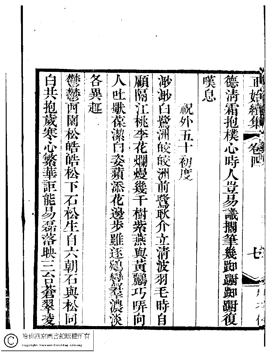 | (PRINT FRIENDLY VERSION) 國朝閨秀正始續集﹕十卷﹐附錄﹕一卷﹐補遺﹕一卷﹐輓詞﹕一卷(清惲珠輯)。清道光十六年(1836)紅香館刻本。 ![]() Page : 4.8a | click for larger image | 國朝閨秀正始續集﹕十卷﹐附錄﹕一卷﹐補遺﹕一卷﹐輓詞﹕一卷(清惲珠輯)。清道光十六年(1836)紅香館刻本。![]() Page : 4.7b | click for larger image | Back |