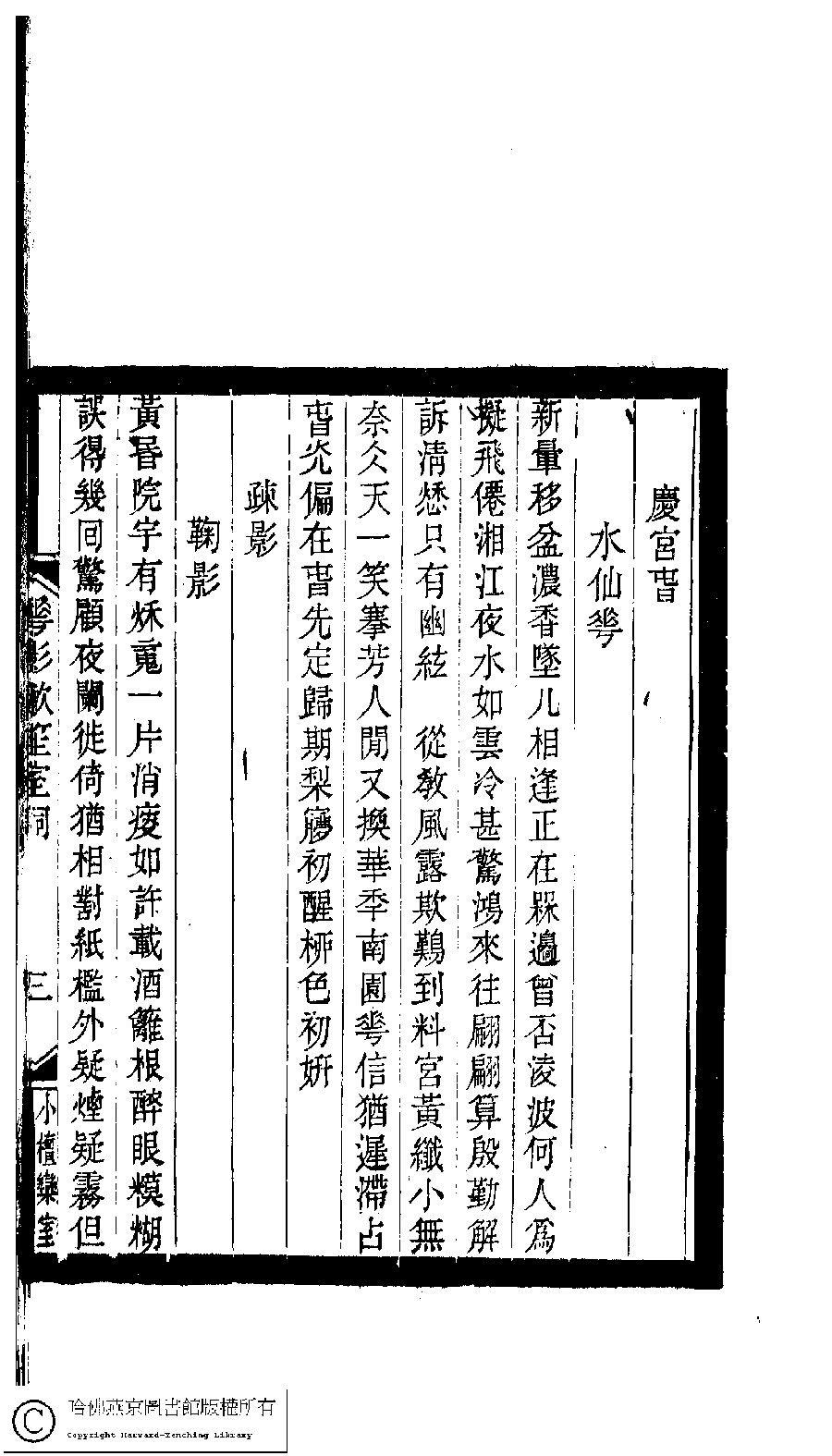 | Appears in: Xiao tan luan shi hui ke gui xiu ci: 10 ji 100 zhong 100 juan (edited by Xu Naichang, Qing dynasty): Hua ying chui sheng shi ci: 1 juan |
