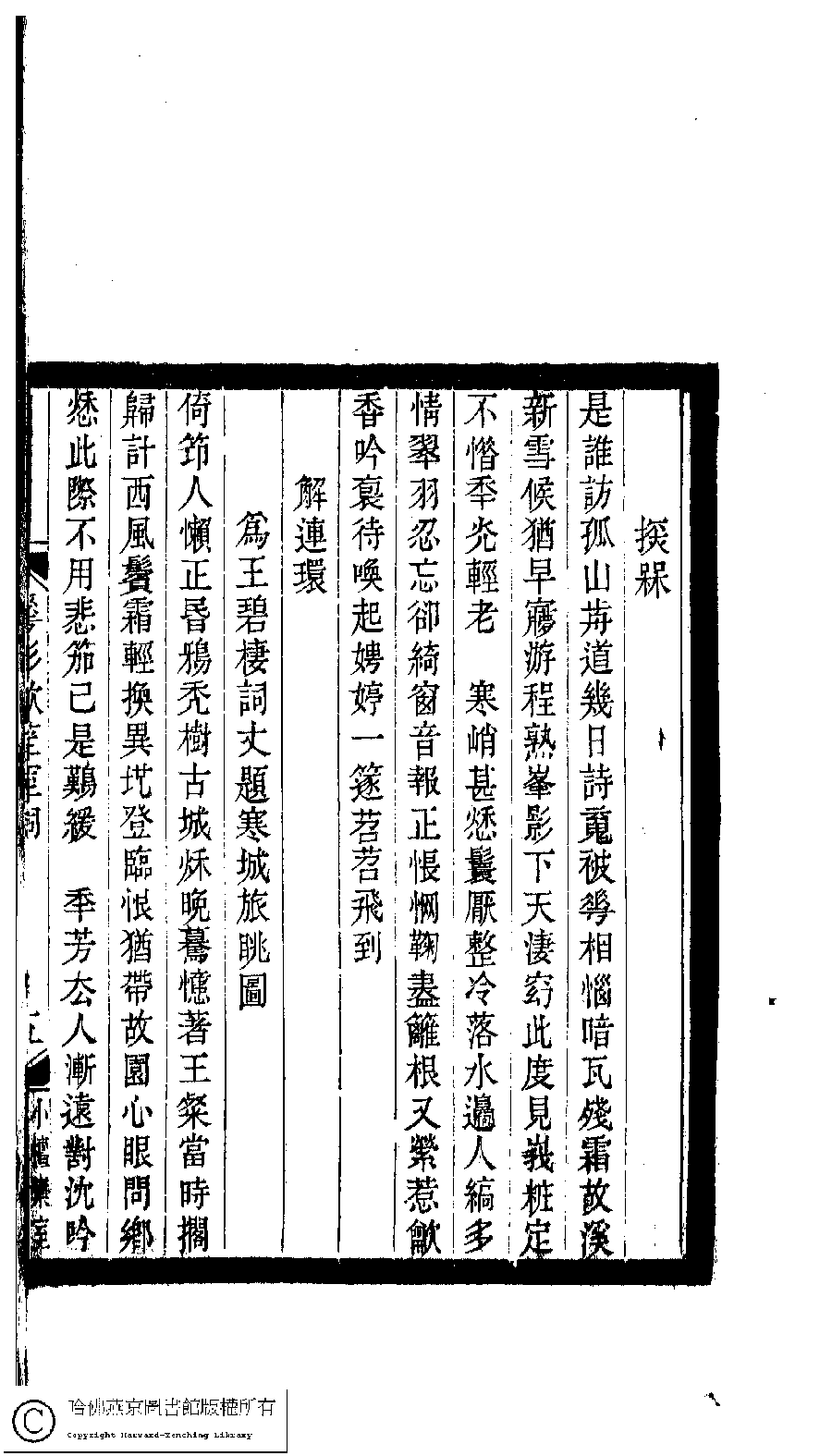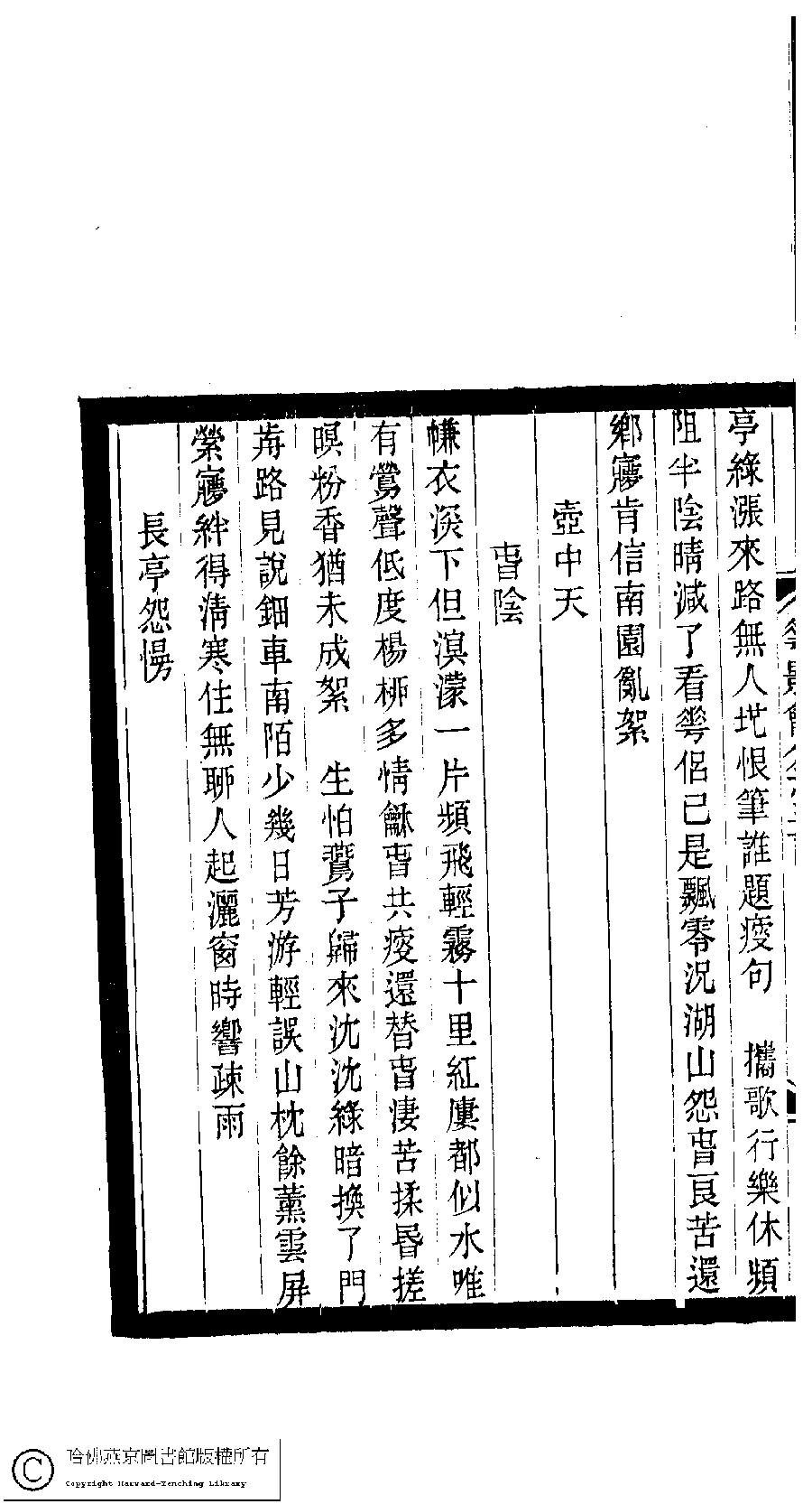 | Appears in: Xiao tan luan shi hui ke gui xiu ci: 10 ji 100 zhong 100 juan (edited by Xu Naichang, Qing dynasty): Hua ying chui sheng shi ci: 1 juan |