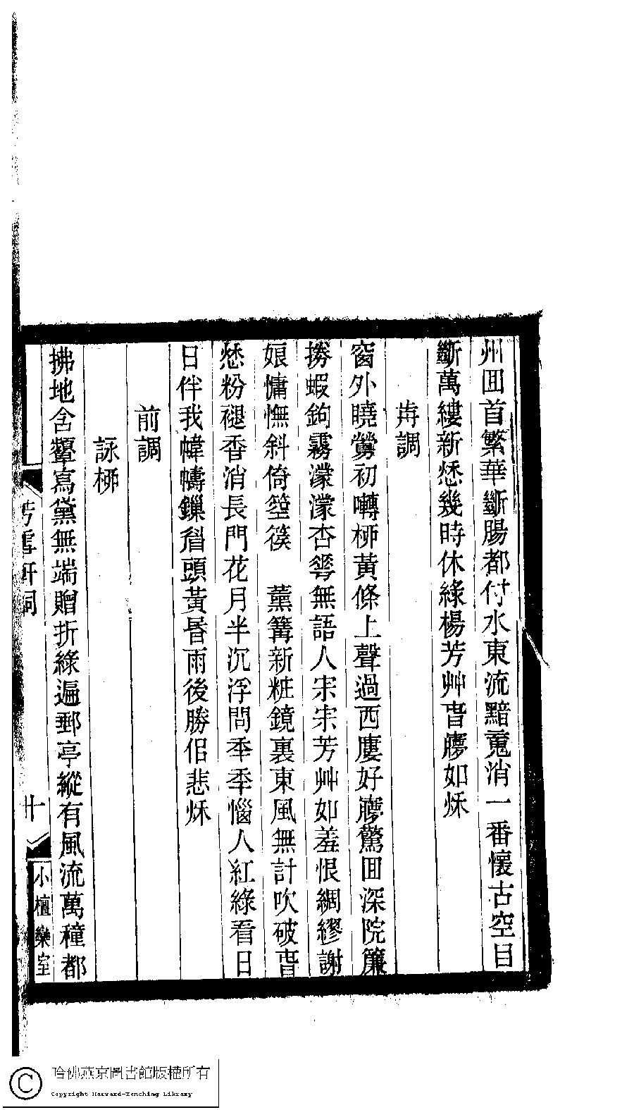 | (PRINT FRIENDLY VERSION) 小檀欒室彙刻閨秀詞﹕十集一百種一百卷(清徐乃昌輯) : 芳雪軒詞﹕一卷。清光緒二十二年(1896)南陵徐氏刻本。 ![]() Page : 1.10b | click for larger image | 小檀欒室彙刻閨秀詞﹕十集一百種一百卷(清徐乃昌輯) : 芳雪軒詞﹕一卷。清光緒二十二年(1896)南陵徐氏刻本。![]() Page : 1.10a | click for larger image | Back |