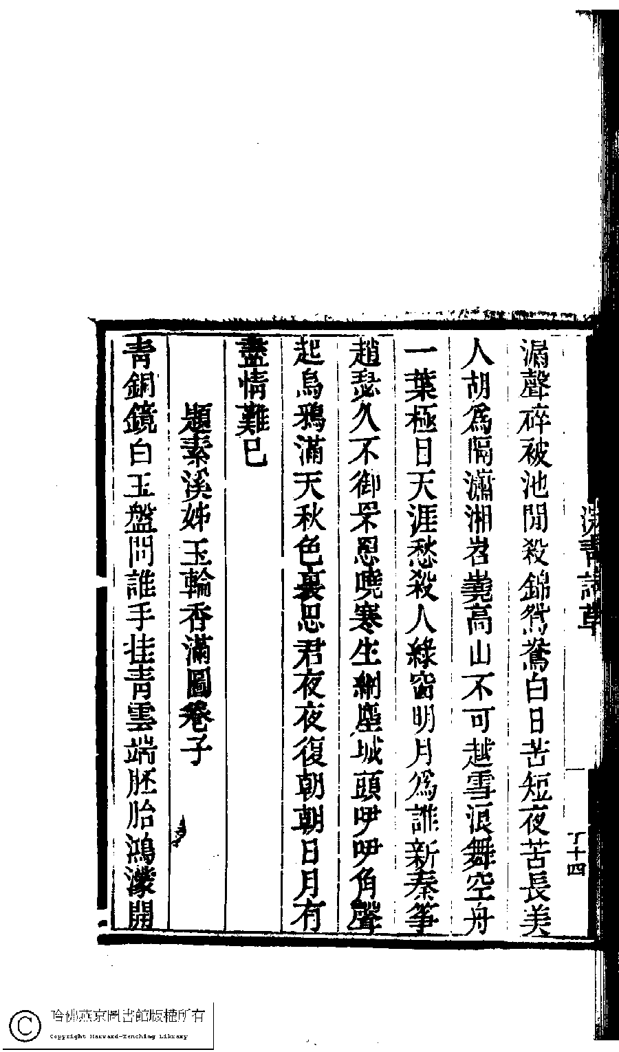 | (PRINT FRIENDLY VERSION) 國朝閨閣詩鈔﹕一百種一百卷(清蔡殿齊輯) : 浣青詩﹕一卷。清道光二十四年(1844)刻本。 ![]() Page : 4.14b | click for larger image | 國朝閨閣詩鈔﹕一百種一百卷(清蔡殿齊輯) : 浣青詩﹕一卷。清道光二十四年(1844)刻本。![]() Page : 4.14a | click for larger image | Back |