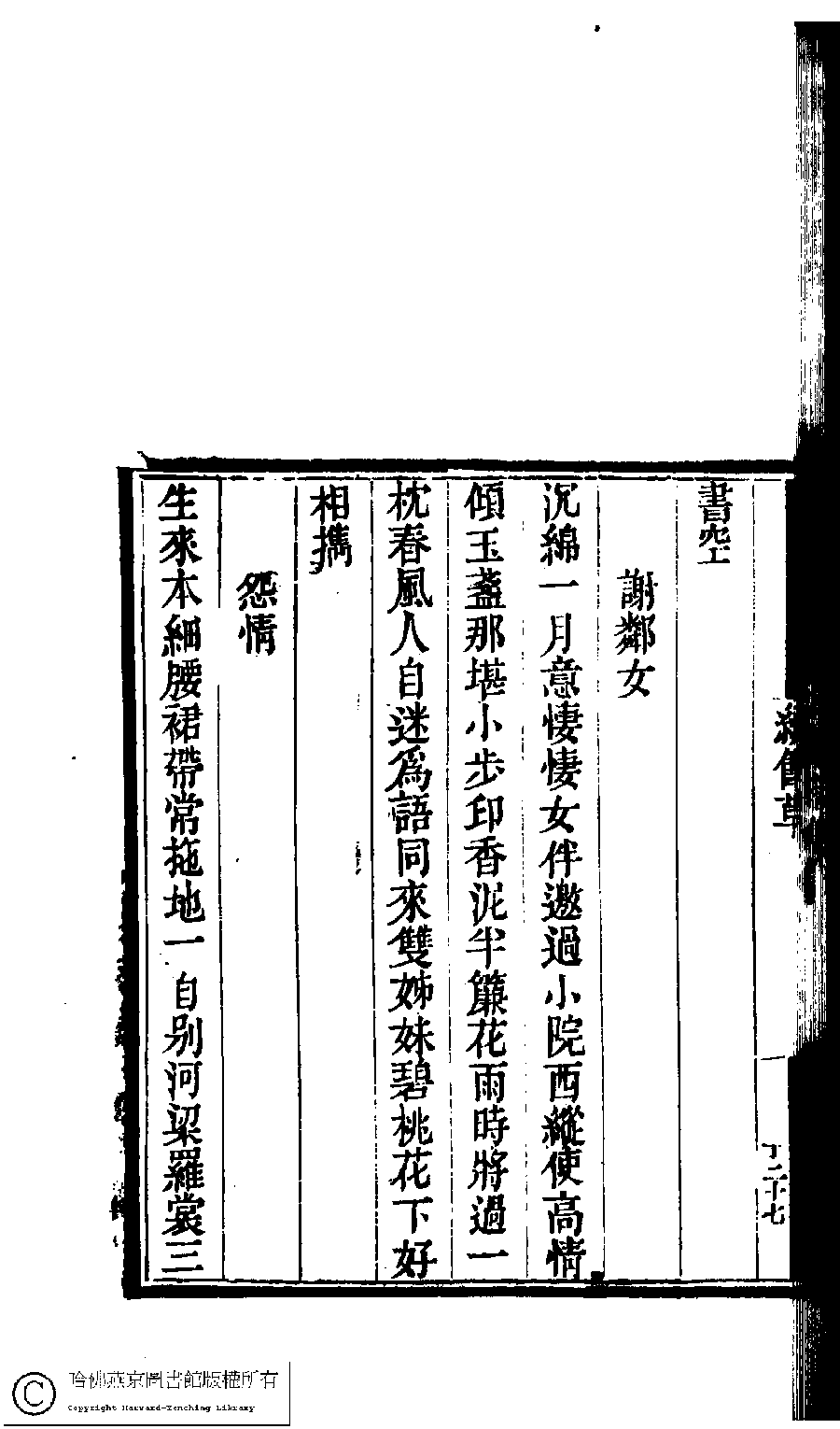 | (PRINT FRIENDLY VERSION) 國朝閨閣詩鈔﹕一百種一百卷(清蔡殿齊輯) : 繡餘草﹕一卷。清道光二十四年(1844)刻本。 ![]() Page : 4.28a | click for larger image | 國朝閨閣詩鈔﹕一百種一百卷(清蔡殿齊輯) : 繡餘草﹕一卷。清道光二十四年(1844)刻本。![]() Page : 4.27b | click for larger image | Back |