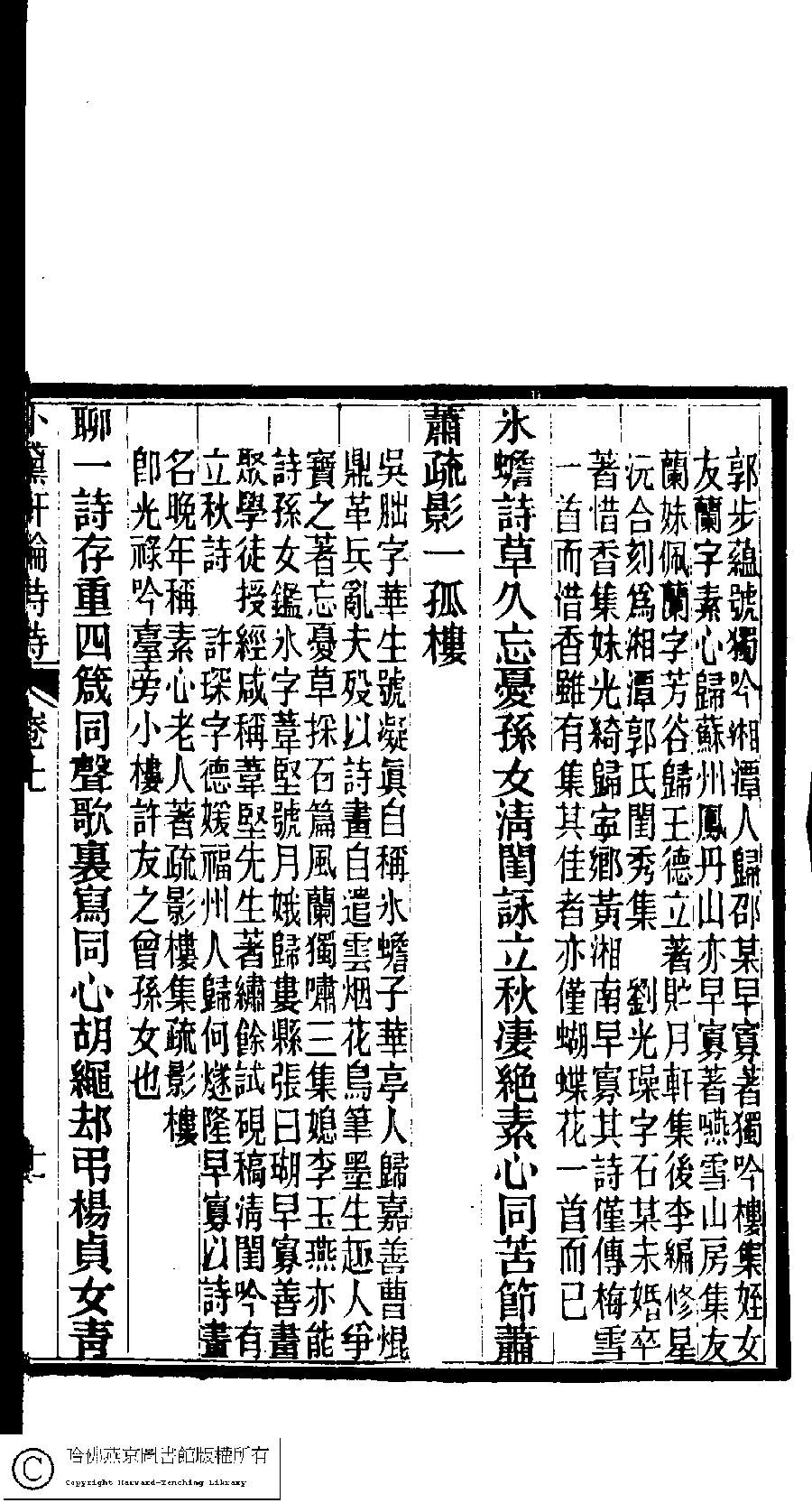 | (PRINT FRIENDLY VERSION) 陳孝女遺集﹕二卷﹔小黛軒論詩詩﹕二卷(清陳芸撰)。民國三年(1914)刻本 ![]() Page : 上.11a | click for larger image | 陳孝女遺集﹕二卷﹔小黛軒論詩詩﹕二卷(清陳芸撰)。民國三年(1914)刻本![]() Page : 上.10b | click for larger image | Back |