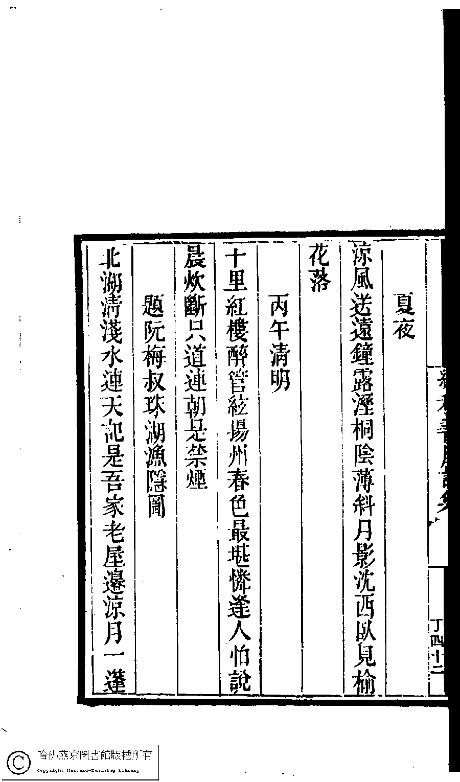 | (PRINT FRIENDLY VERSION) 國朝閨閣詩鈔﹕一百種一百卷(清蔡殿齊輯) : 綠秋書屋詩集﹕一卷。清道光二十四年(1844)刻本。 ![]() Page : 4.42b | click for larger image | Back |