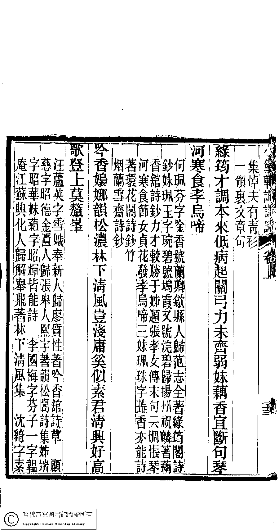 | (PRINT FRIENDLY VERSION) 陳孝女遺集﹕二卷﹔小黛軒論詩詩﹕二卷(清陳芸撰)。民國三年(1914)刻本 ![]() Page : 上.23b | click for larger image | Back |