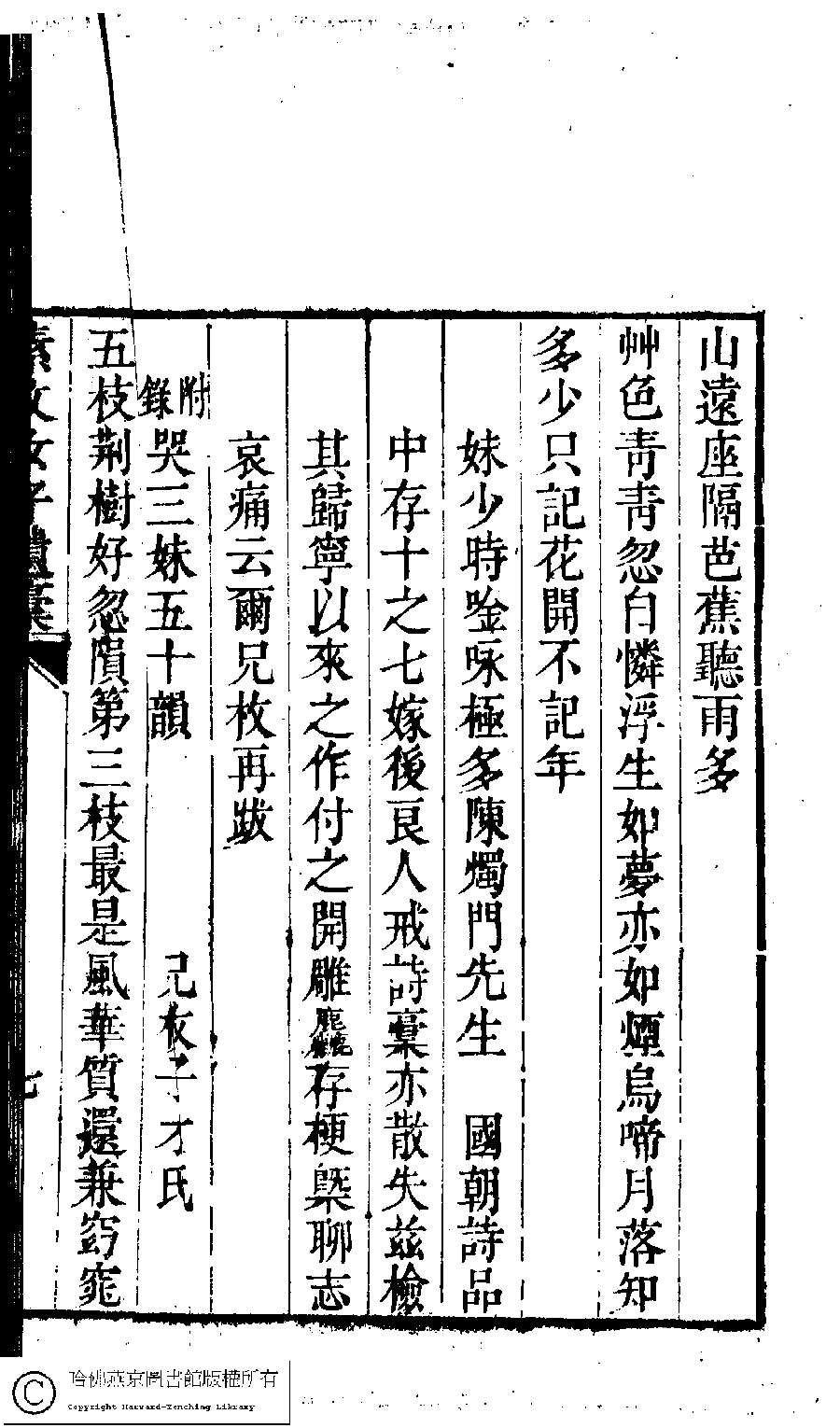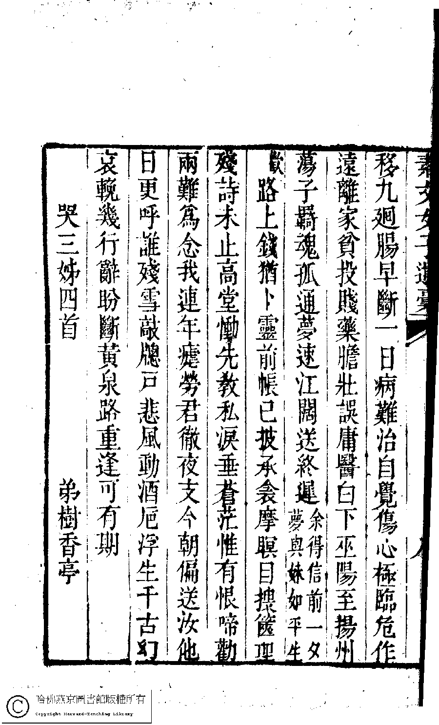 | (PRINT FRIENDLY VERSION) 素文女子遺稿(清袁機撰)。清嘉慶間(1796-1820)刻本。 ![]() Page : 8b | click for larger image | 素文女子遺稿(清袁機撰)。清嘉慶間(1796-1820)刻本。![]() Page : 8a | click for larger image | 素文女子遺稿(清袁機撰)。清嘉慶間(1796-1820)刻本。![]() Page : 7b | click for larger image | 素文女子遺稿(清袁機撰)。清嘉慶間(1796-1820)刻本。![]() Page : 7a | click for larger image | Back |