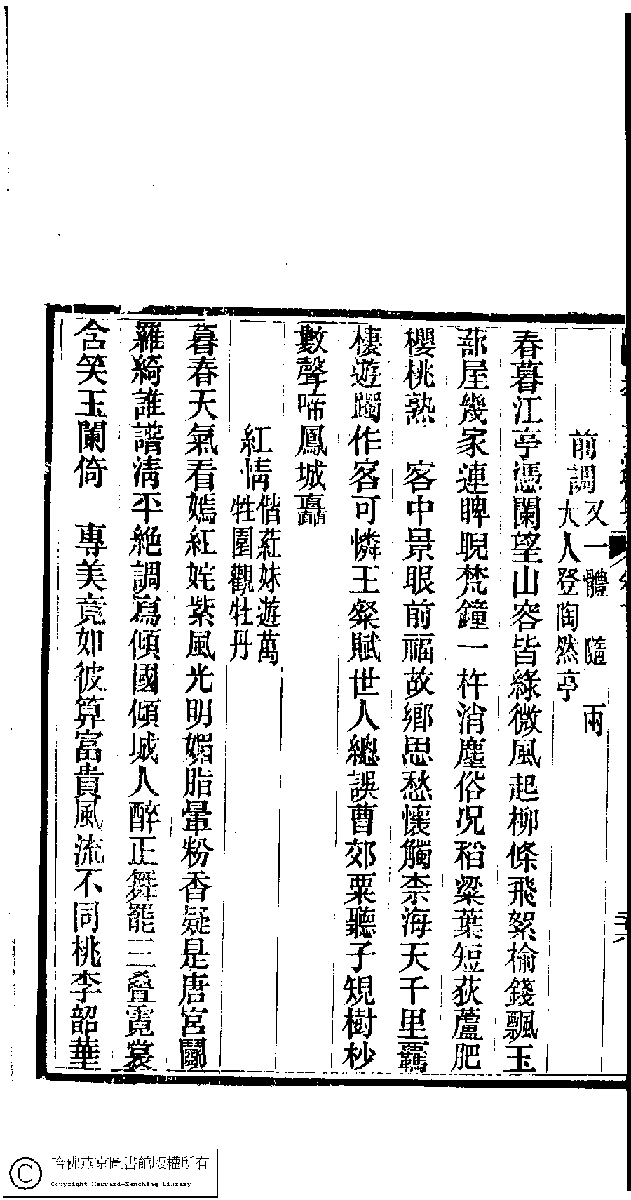 | (PRINT FRIENDLY VERSION) 陳孝女遺集﹕二卷﹔小黛軒論詩詩﹕二卷(清陳芸撰)。民國三年(1914)刻本 ![]() Page : 下.26b | click for larger image | Back |
