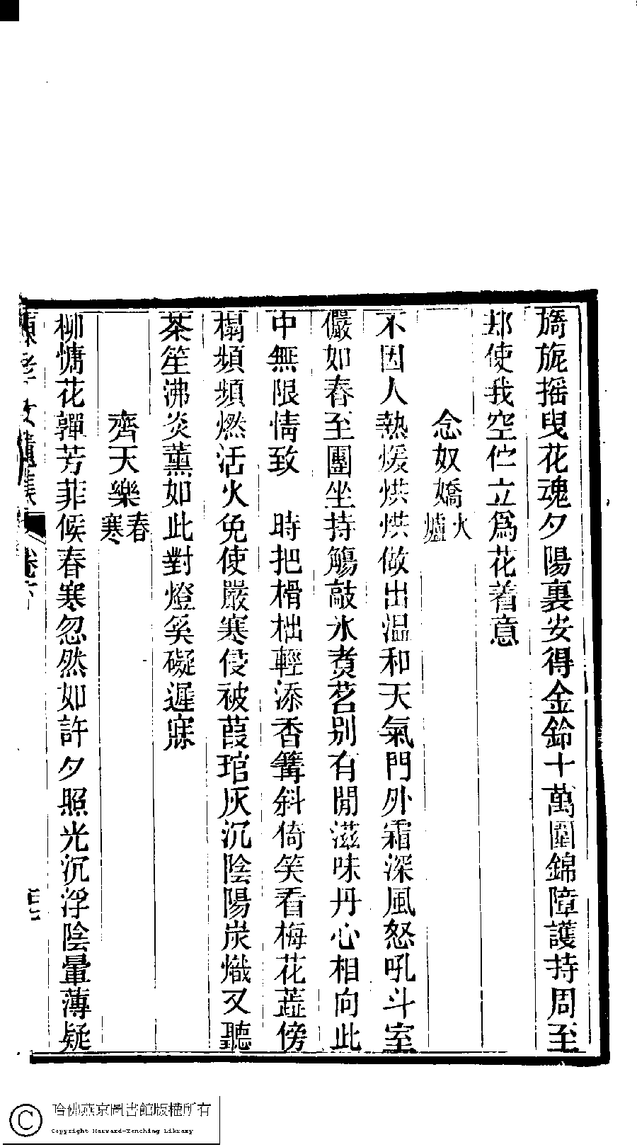 | (PRINT FRIENDLY VERSION) 陳孝女遺集﹕二卷﹔小黛軒論詩詩﹕二卷(清陳芸撰)。民國三年(1914)刻本 ![]() Page : 下.27a | click for larger image | 陳孝女遺集﹕二卷﹔小黛軒論詩詩﹕二卷(清陳芸撰)。民國三年(1914)刻本![]() Page : 下.26b | click for larger image | Back |
