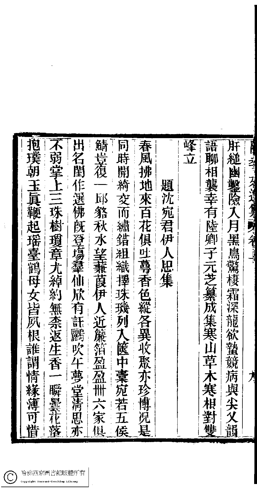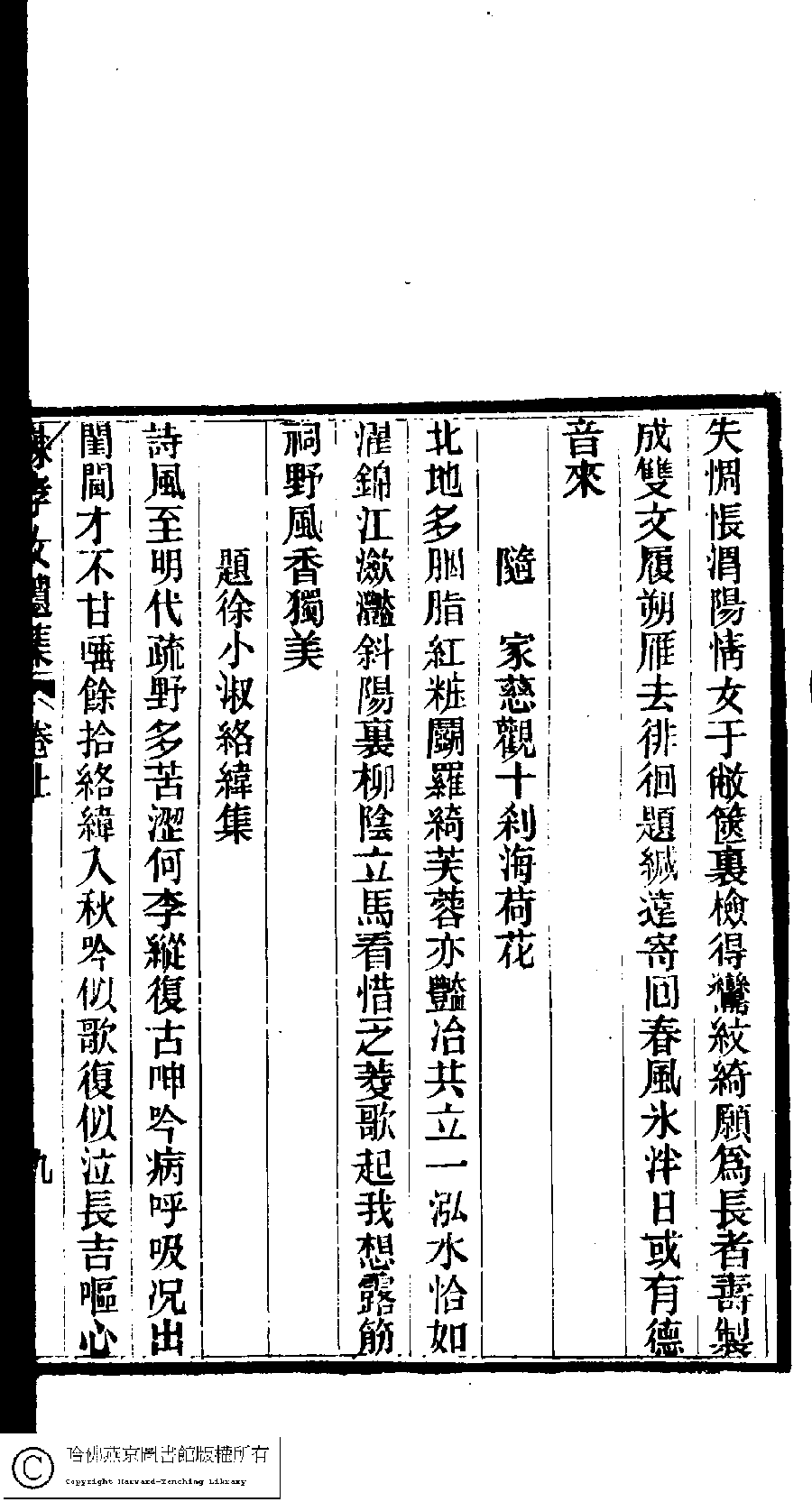 | (PRINT FRIENDLY VERSION) 陳孝女遺集﹕二卷﹔小黛軒論詩詩﹕二卷(清陳芸撰)。民國三年(1914)刻本 ![]() Page : 上.9b | click for larger image | 陳孝女遺集﹕二卷﹔小黛軒論詩詩﹕二卷(清陳芸撰)。民國三年(1914)刻本![]() Page : 上.9a | click for larger image | Back |