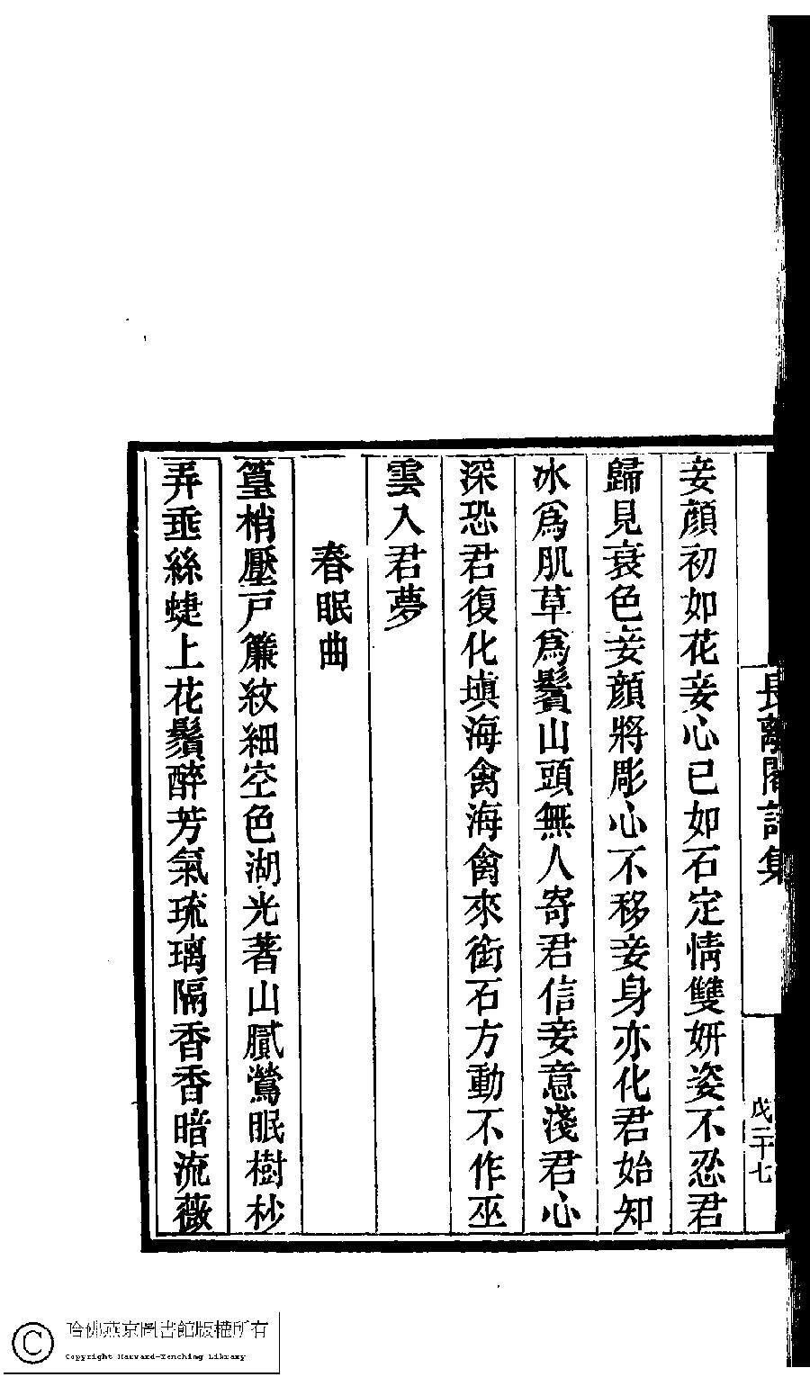 | Appears in: Guo chao gui ge shi chao: 100 zhong 100 juan (edited by Cai Dianqi, Qing dynasty): Chang li ge shi ji: 1 juan |
