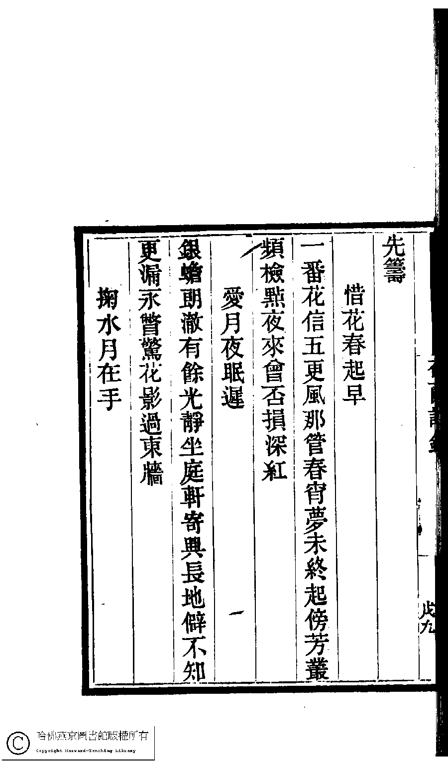 | Appears in: Guo chao gui ge shi chao: 100 zhong 100 juan (edited by Cai Dianqi, Qing dynasty): Shi lan shi chao: 1 juan |