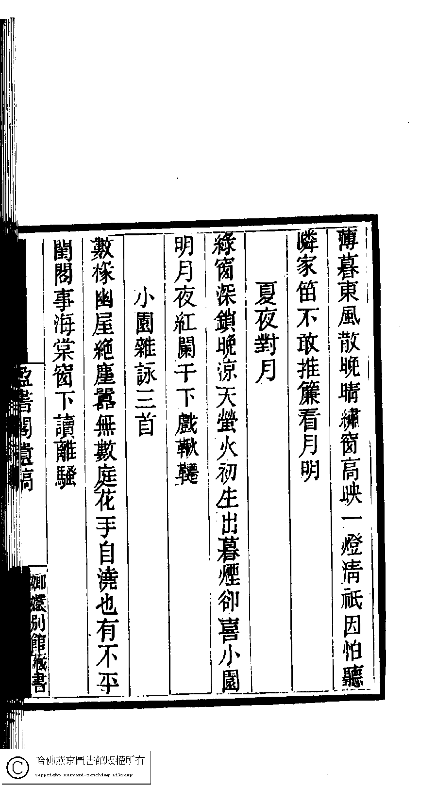 | (PRINT FRIENDLY VERSION) 國朝閨閣詩鈔﹕一百種一百卷(清蔡殿齊輯) : 盈書閣遺稿﹕一卷。清道光二十四年(1844)刻本。 ![]() Page : 5.15a | click for larger image | 國朝閨閣詩鈔﹕一百種一百卷(清蔡殿齊輯) : 盈書閣遺稿﹕一卷。清道光二十四年(1844)刻本。![]() Page : 5.14b | click for larger image | Back |