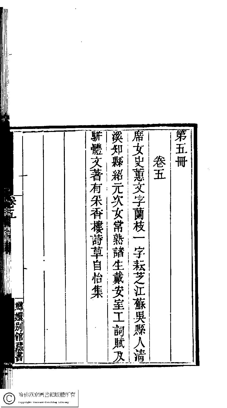| (PRINT FRIENDLY VERSION) 國朝閨閣詩鈔﹕一百種一百卷(清蔡殿齊輯) : 采香樓詩草﹕一卷。清道光二十四年(1844)刻本。 ![]() Page : 5.16b | click for larger image | 國朝閨閣詩鈔﹕一百種一百卷(清蔡殿齊輯) : 采香樓詩草﹕一卷。清道光二十四年(1844)刻本。![]() Page : 5.16a | click for larger image | Back |