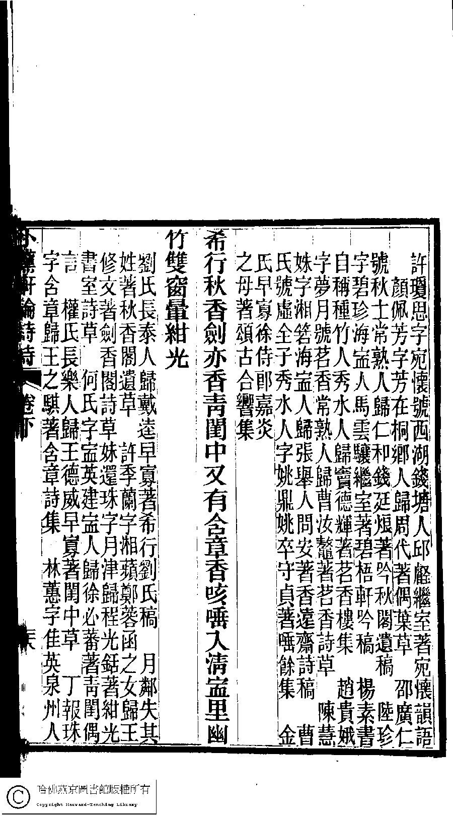 | (PRINT FRIENDLY VERSION) 陳孝女遺集﹕二卷﹔小黛軒論詩詩﹕二卷(清陳芸撰)。民國三年(1914)刻本 ![]() Page : 下.28b | click for larger image | 陳孝女遺集﹕二卷﹔小黛軒論詩詩﹕二卷(清陳芸撰)。民國三年(1914)刻本![]() Page : 下.28a | click for larger image | Back |