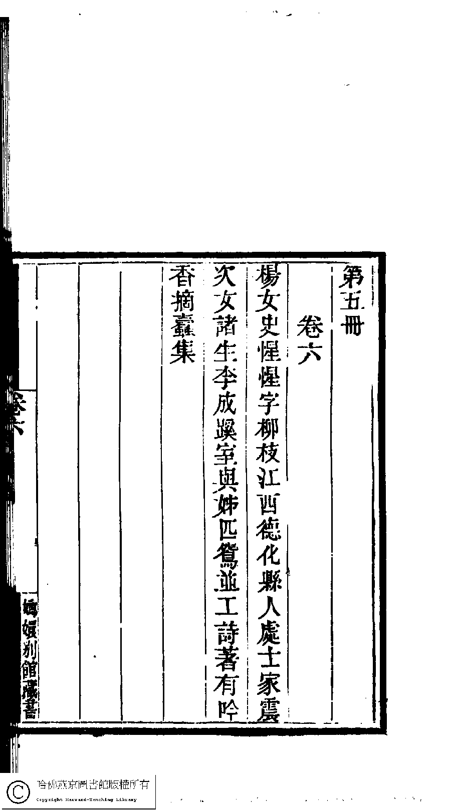 | (PRINT FRIENDLY VERSION) 國朝閨閣詩鈔﹕一百種一百卷(清蔡殿齊輯) : 吟香摘蠹集﹕一卷。清道光二十四年(1844)刻本。 ![]() Page : 5.21b | click for larger image | 國朝閨閣詩鈔﹕一百種一百卷(清蔡殿齊輯) : 吟香摘蠹集﹕一卷。清道光二十四年(1844)刻本。![]() Page : 5.21a | click for larger image | Back |