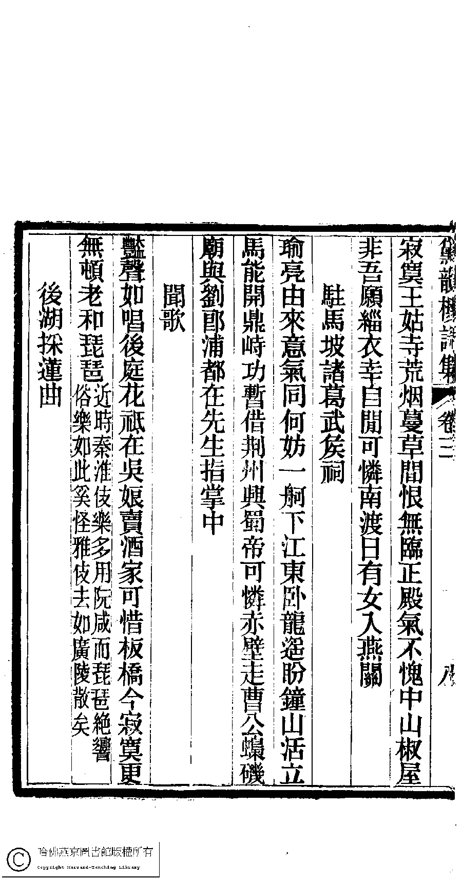 | (PRINT FRIENDLY VERSION) 黛韻樓遺集(清薛紹徽撰)。甲寅閏月(1914)刻本。 ![]() Page : 3.8b | click for larger image | Back |